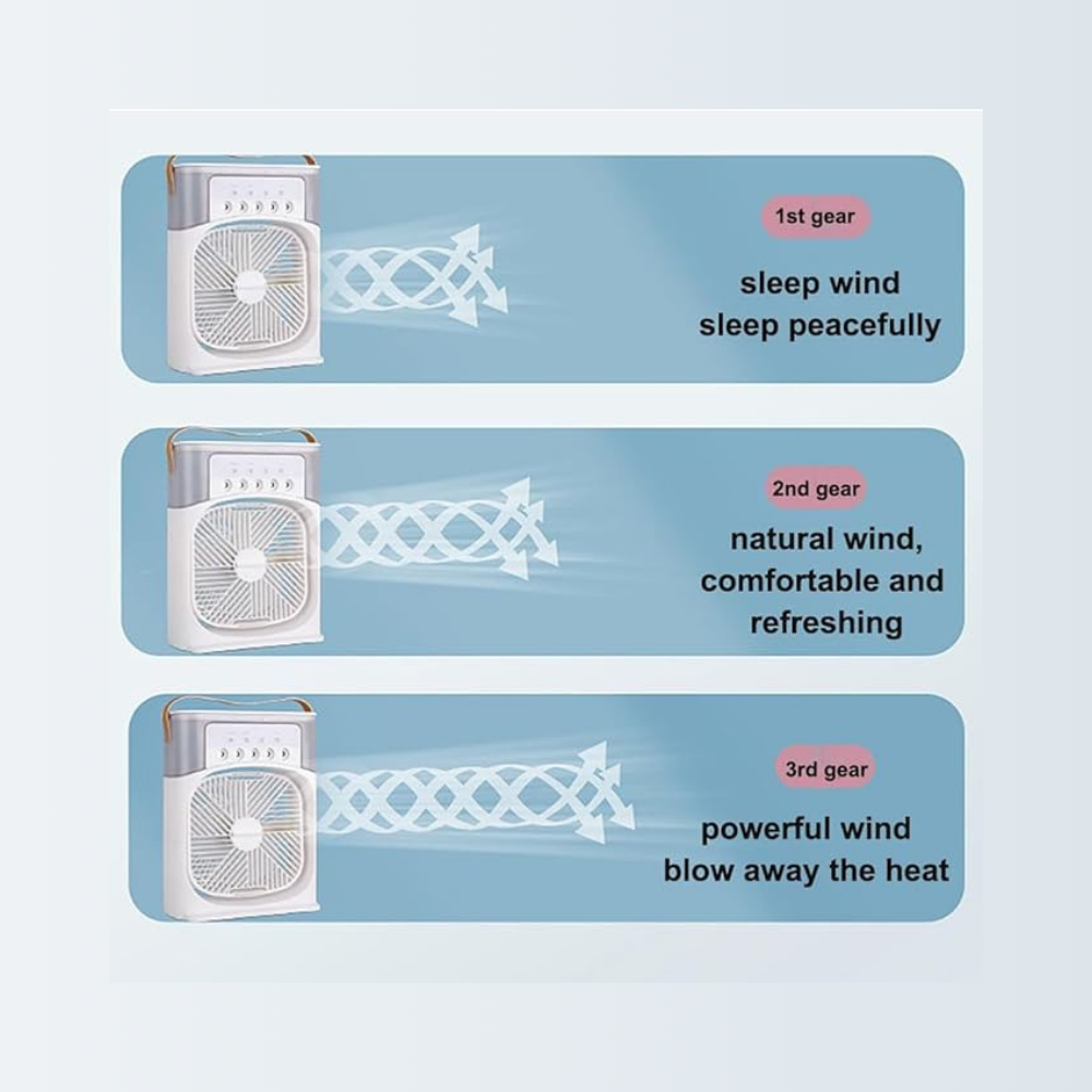 Beat the heat with the DLC Cooling Fan With Ice designed for powerful and refreshing airflow. With its misting technology and oscillating function it quickly cools your room or outdoor space while maintaining whisper-quiet operation. Compact yet efficient it’s perfect for bedrooms offices travel or outdoor use. This mini frost fan includes 3 adjustable speed settings a built-in water tank for ice cooling and a hands-free design for maximum convenience. Made from durable ABS plastic with a 10W power rating it ensures reliable cooling performance while staying energy efficient. Easy to clean and portable it’s your all-in-one cooling companion. Features: - Portable design for home office or travel - Ice cooling with built-in water tank - Oscillating function for wider airflow - 3 speed settings with remote control - Whisper-quiet low-noise operation - 10W power energy efficient - Durable ABS plastic body - Compact hands-free design