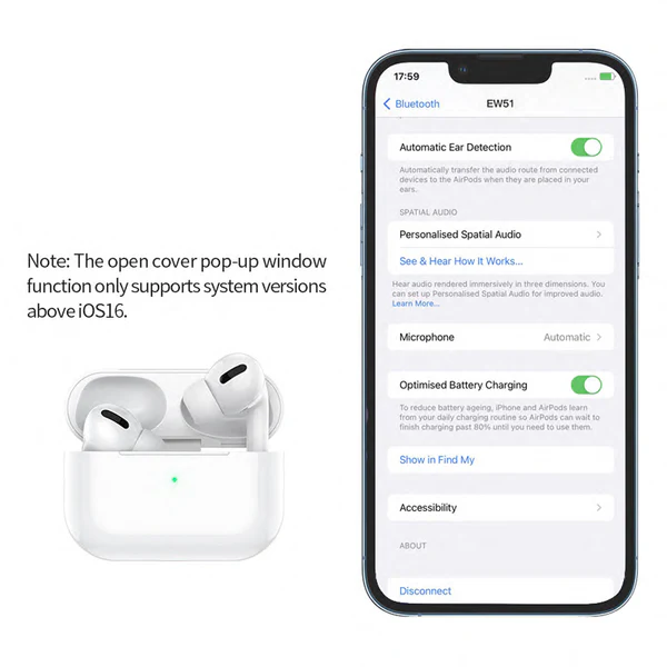 1. Bluetooth 5.3 chip: JL AC7003 2. Battery capacity: charging case 300mAh; Headset 30mAh 3. Use time: 3.5 hours; Standby time: 150 hours 4. Size: 60.645.221.7mm; Weight: 57.6g 5. Support noise reduction and transparency mode support sliding volume adjustment  with magnetic wireless charging function charging compartment with prompt sound 6. Do not support in-ear detection do not support pop-up windows do not support Apple mobile phone positioning do not support Apple mobile phone custom operation sound pickup function. Watch wireless charging is not supported