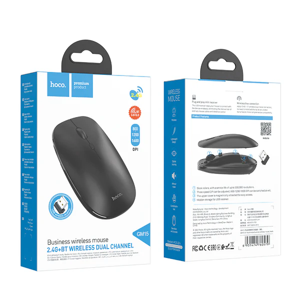 Hoco GM15 Art Dual-mode Business Wireless Mouse (Black White Color)