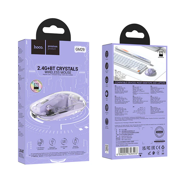 Hoco GM29 Mysterious Dual-mode Silent Wireless Mouse (Black White Purple Color)