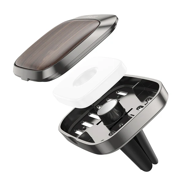 Material: ABS + zinc alloy + silicone Surface finish: sunning + polished treatment Dimensions: 49 × 37 × 38.5 mm; weight: 50 g Opening/closing method: magnetic design Installation: suitable for car air outlets Accessories: includes 2 aromatherapy tablets (1 cologne + 1 ocean)
