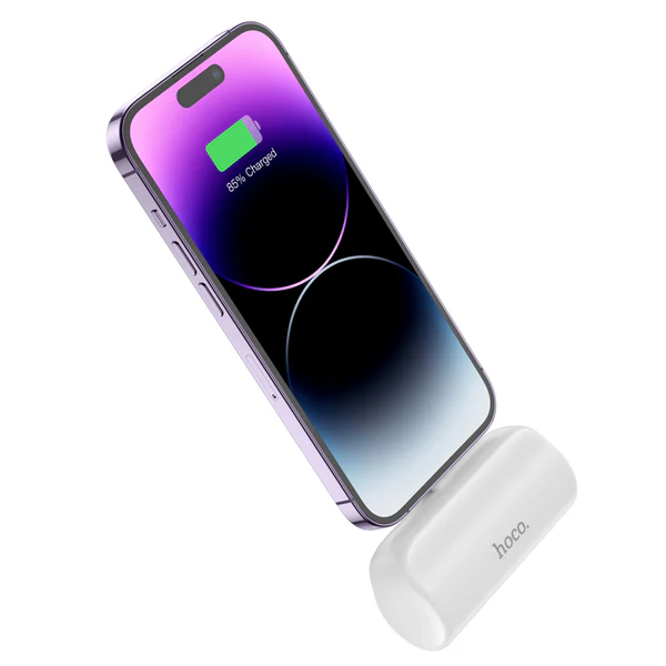 Capacity: 5000mAh (18.5Wh); rated capacity 2900mAh Input: Type-C 5V/2A Output: Lightning 5V/2A Power Indicator: LED display shows remaining battery Material: ABS + PC flame-retardant shell with 21700 battery cell Dimensions Weight: 78 × 47 × 28 mm; 95 g Design: Compact portable and includes a built-in support function