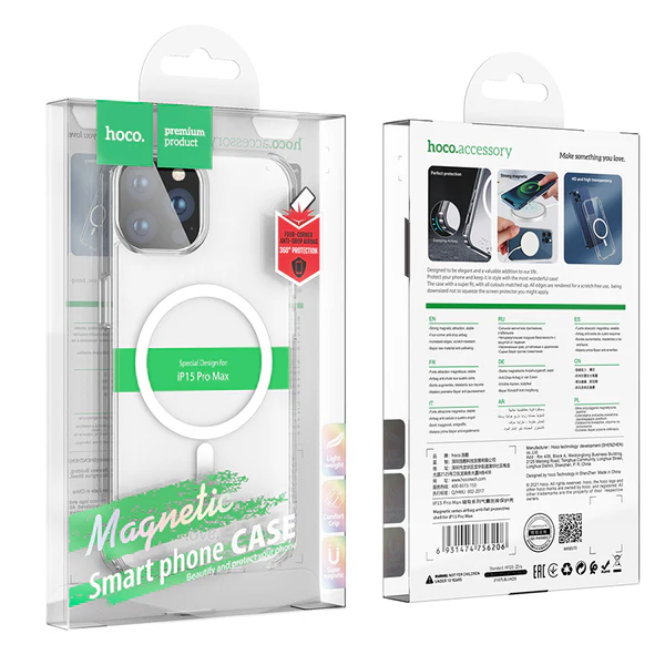 Hoco Magnetic Smart Phone Case Anti-Fall for iPhone 15 Pro Max Transparent
