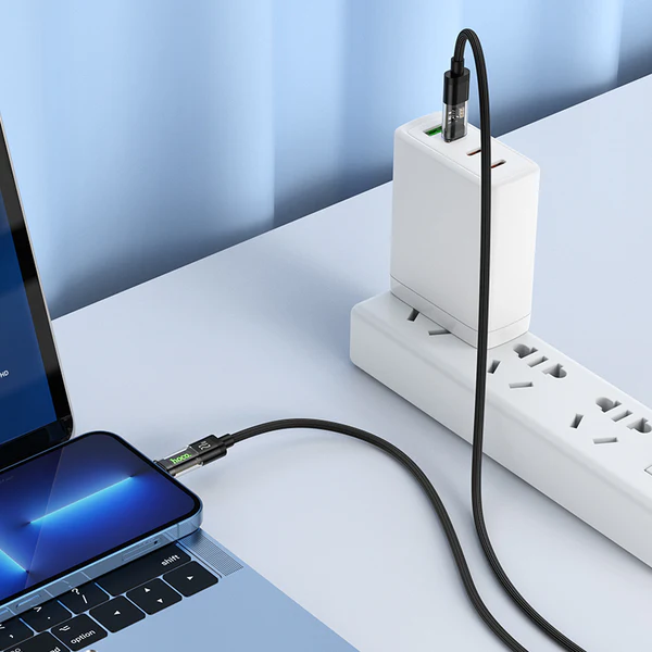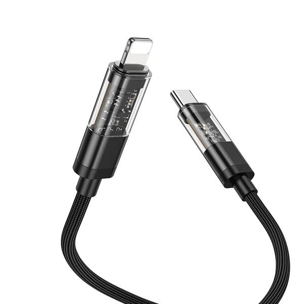Cable length: 1.2m | Weight: 29g Jacket material: nylon yarn finish for durability Connector: transparent injection-molded joints Wire core: (65/0.08)×2 + (16/0.08)×3 | OD 3.8mm Charging performance: supports Apple PD 20W fast charging Smart indicator: logo changes from red to green when voltage reaches 9V or above signaling fast charging mode