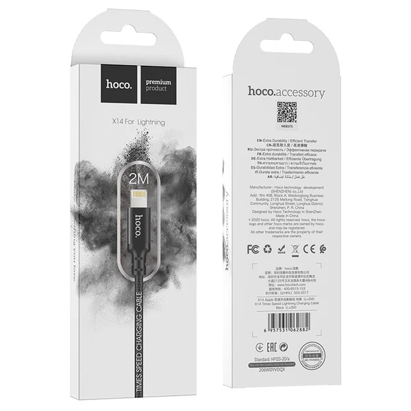 HocoX14 Times Speed iP Charging Cable (L=2M) Black Red Color