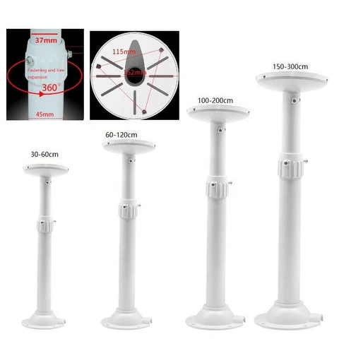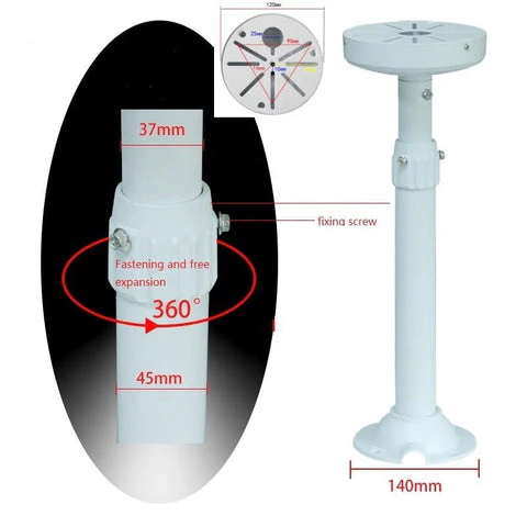 Product Type: 3060 cm Retractable Hemisphere Stand Origin: Guangdong ChinaBrand: CRONYCategory: Camera Housing / Mounting Stand / Holder Product Name: Junction Box Bracket Application: Designed for dome camera head mounting Material: Durable aluminum alloy Color: White Features: Fixed or adjustable design for flexible installation Model: 45 Pipe with Large Junction Box (3060 cm adjustable length) Adjustable Length: 3060 cm