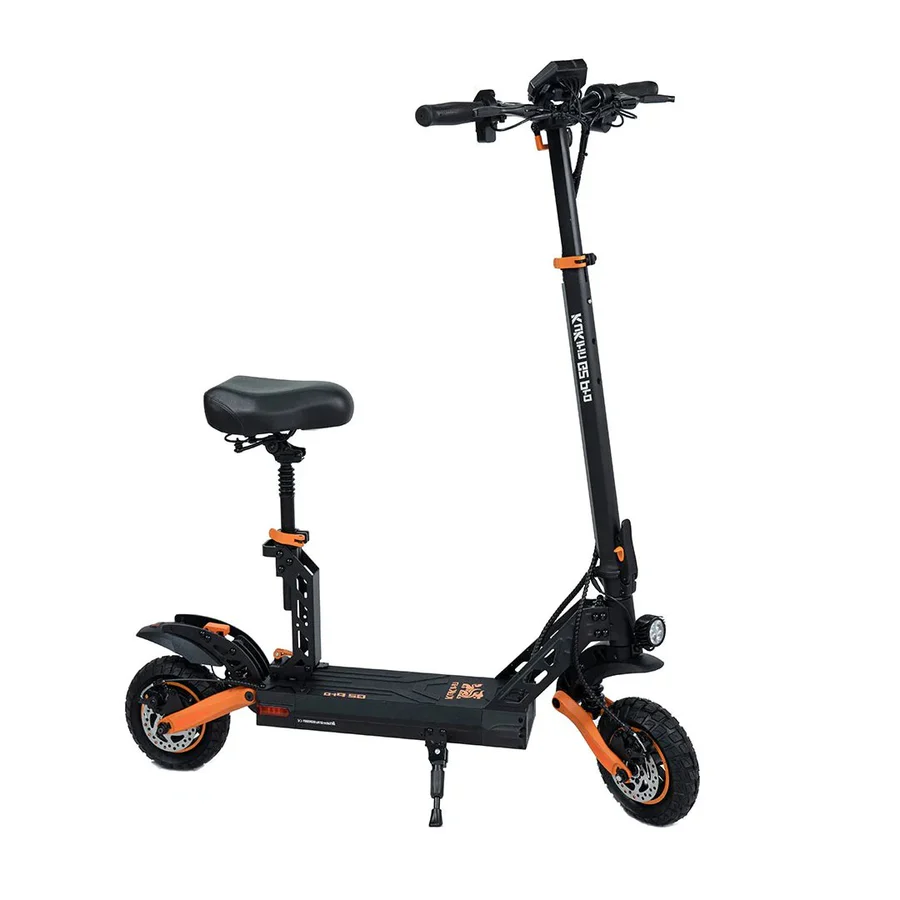 Kugoo Kirin G2 Pro Off-Road Electric Scooter Take your riding experience to the next level with the Kugoo Kirin G2 Pro a stylish and durable off-road electric scooter designed for both adventure and daily commuting. Engineered with advanced technology a powerful motor and superior suspension the G2 Pro delivers the perfect combination of performance comfort and reliability on every ride. Key Features Powerful 600W Brushless MotorThe G2 Pro is powered by a robust 800W motor that offers quick acceleration and steady power easily handling steep slopes and rough terrains with confidence. Long-Range 15Ah BatteryEnjoy extended trips without frequent recharging. The large-capacity 48V 15Ah lithium battery provides a riding range of up to 55 km per charge perfect for long commutes or weekend exploration. All-Terrain CapabilityDesigned for versatility the G2 Pro’s 9-inch pneumatic off-road tires deliver excellent traction and stability across various surfaces from urban roads to gravel trails. Advanced Suspension SystemEquipped with front and rear shock absorbers the G2 Pro ensures a smooth and stable ride even on bumpy paths or uneven terrain. Secure Dual Disc BrakesFor maximum safety the scooter features front and rear disc brakes that offer strong responsive stopping power under any conditions. Smart Digital DisplayThe bright LCD dashboard provides real-time updates on speed battery status mileage and gear selection keeping you fully informed on every ride. Bright LED Lighting SystemIncludes a high-intensity headlight rear brake light and side indicators for enhanced visibility and safety during night rides. Foldable Portable DesignThe G2 Pro’s quick-folding mechanism makes it easy to carry transport and store ideal for commuters or riders with limited space. Comfort-Focused BuildFeaturing a wide anti-slip deck and ergonomic handlebars this scooter is designed for both comfort and stability ensuring a premium riding experience. Perfect For Riders seeking a powerful off-road e-scooter that balances speed durability and comfort. Ideal for city commuting outdoor trails or long-distance rides.