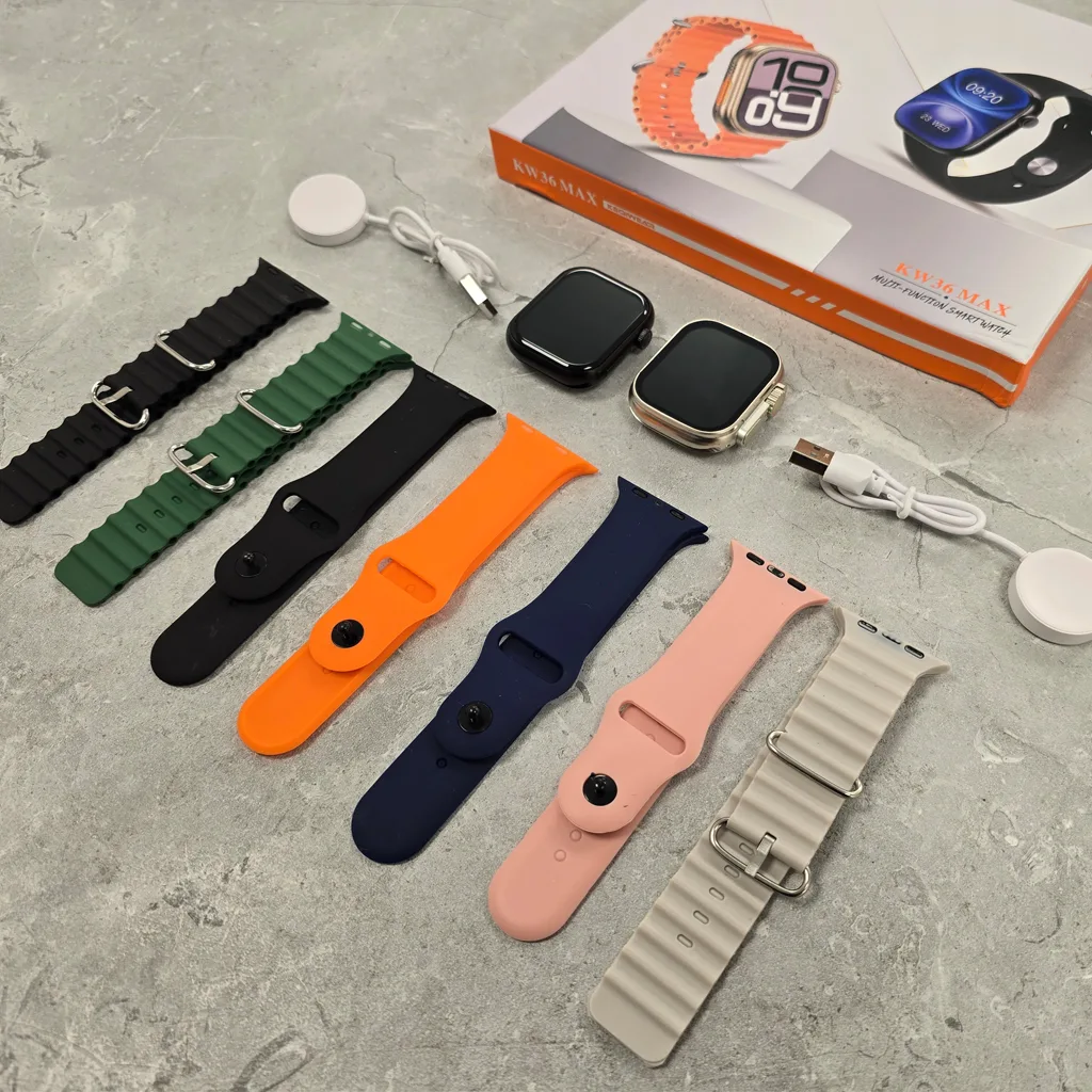 The KW36 Max Smartwatch combines modern design with powerful features to keep you connected and on track every day. Its vibrant HD full-touch display offers a smooth and clear viewing experience while Bluetooth calling lets you answer or make calls directly from your wrist. Stay on top of your fitness with multi-sport modes heart rate monitoring sleep tracking and daily activity tracking. With a long-lasting battery IP67 waterproof rating and a comfortable strap the KW36 Max is perfect for workouts travel and everyday wear. A stylish and reliable smart companion for both men and women.