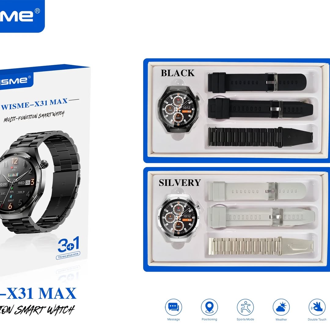 The WISME X31 Max Smartwatch is a stylish durable and performance-driven wearable that keeps you connected and active. With Bluetooth calling sports tracking health monitoring and real-time notifications it is built for men and women who want a modern smartwatch for fitness work and lifestyle. Its HD touch display customizable watch faces and long-lasting battery make it a reliable daily companion. Key Features: Bluetooth Calling Make and receive calls directly from your wrist. Smart Notifications Stay updated with SMS WhatsApp Facebook app alerts. Multi-Sports Modes Track running walking cycling and more workouts. Health Monitoring Heart rate sleep tracking daily activity reminders. HD Full Touch Display Smooth and stylish interface with bright visuals. Customizable Watch Faces Choose from multiple stylish dials. Weather Forecast Real-time weather updates. Music Camera Control Manage music and take photos remotely. Durable Build Comfortable Strap Designed for all-day wear. Long Battery Life Efficient power-saving for extended use. Specifications: Model: WISME X31 Max Display: HD Full Touch Screen Connectivity: Bluetooth (Calling Notifications) Functions: Calling Messaging Sports Tracking Weather Music Camera Control Health Monitoring Compatibility: Android iOS smartphones Design: Slim lightweight durable strap design Battery Life: Long-lasting with energy-efficient mode