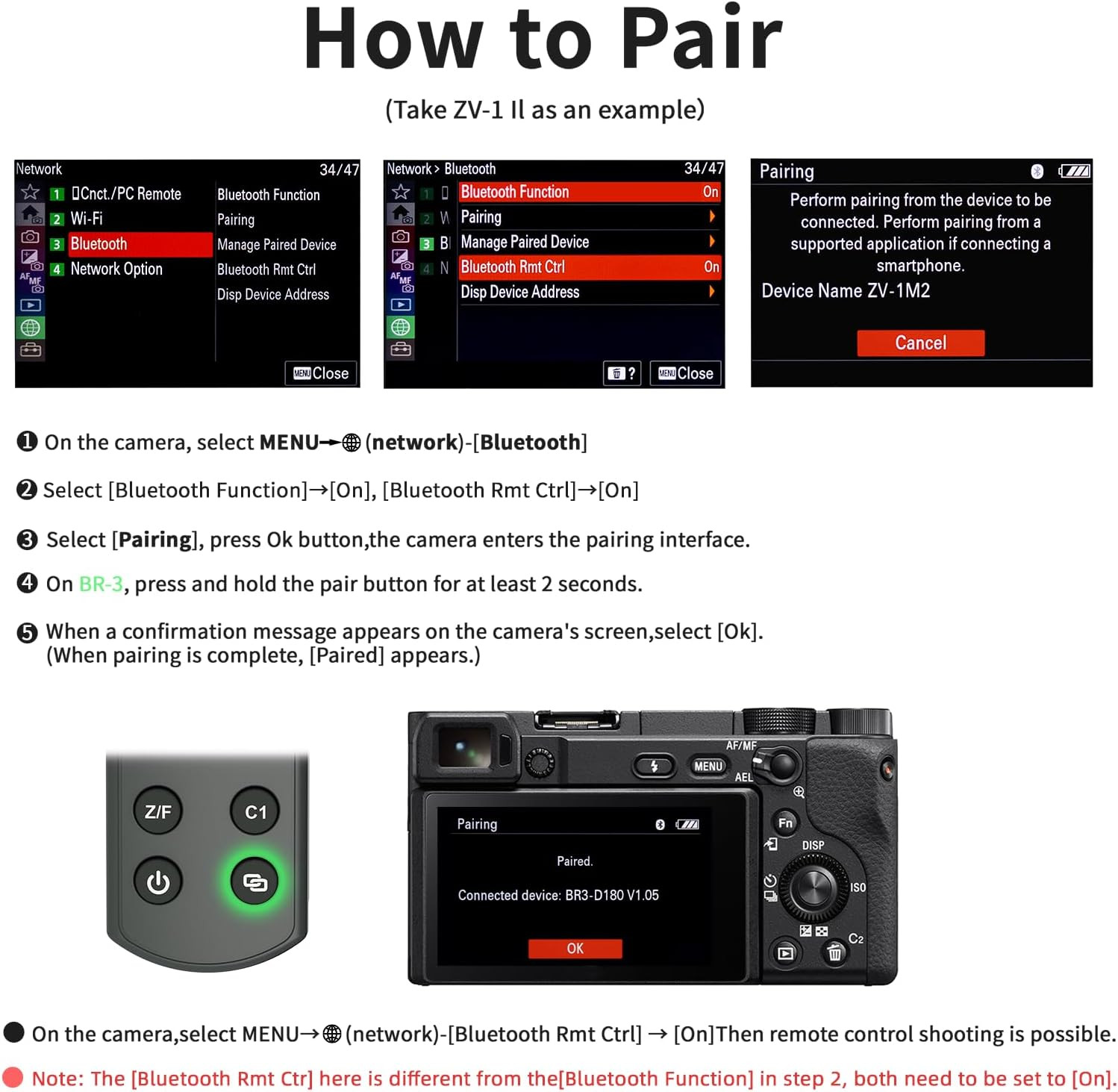 The remote works with many Sony camera models including popular series like: