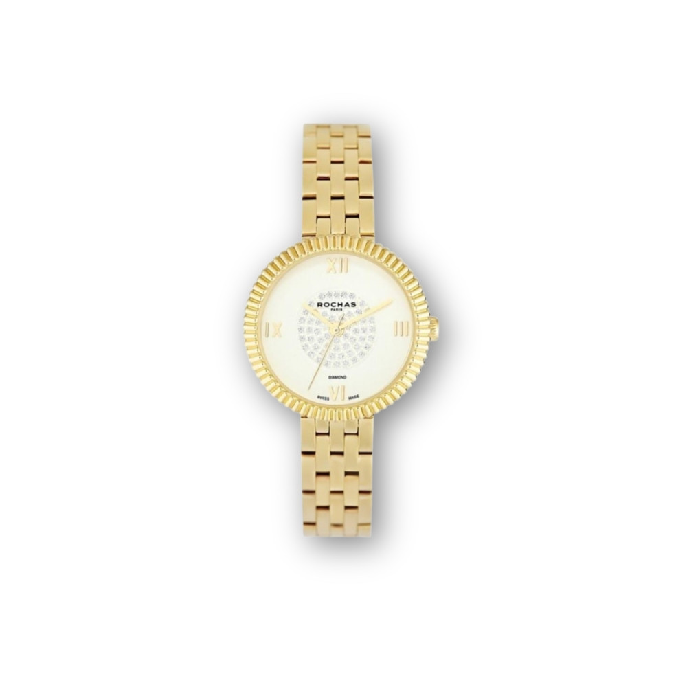 The Rochas Ladies Diamond Watch is a beautiful and elegant piece that shows grace, style, and accuracy. It's made for the modern woman and has a shiny case with sparkling diamonds that add a refined touch to any look. Made from high-quality materials and with a precise quartz movement, it combines classic Parisian elegance with everyday use. This watch is great for both special events and regular wear, and it shows Rochas' signature charm and fine workmanship.