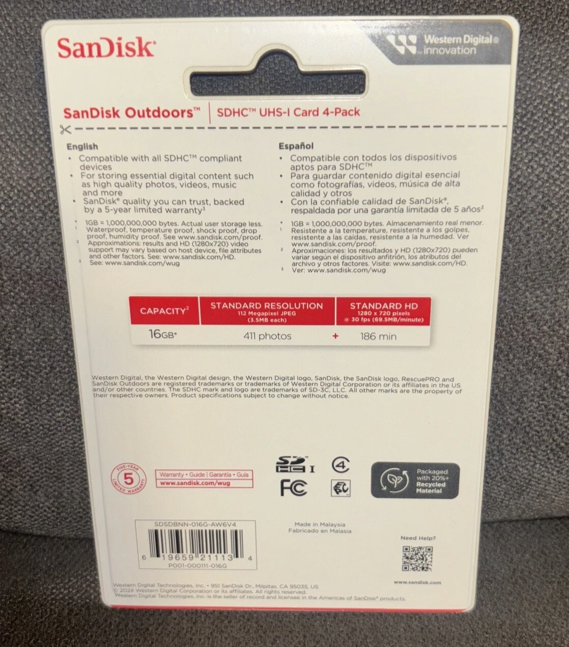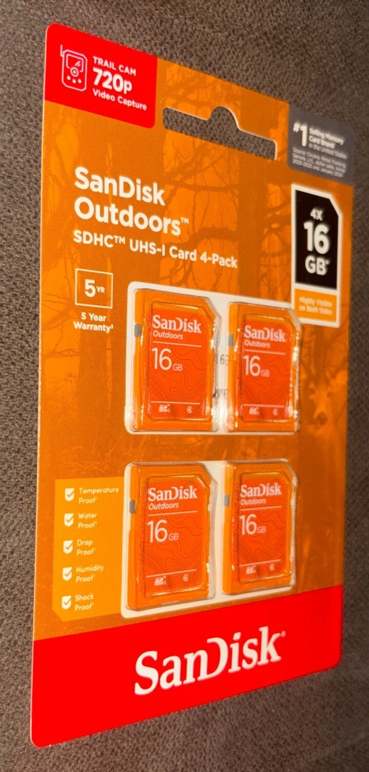 The SanDisk Outdoors SD UHS-I Card 16GB (4-Pack) is designed for adventurers, photographers, and outdoor enthusiasts who need reliable storage in rugged conditions. With 16GB per card and four cards included, this pack provides flexible and dependable storage for cameras, drones, and other SD-compatible devices.