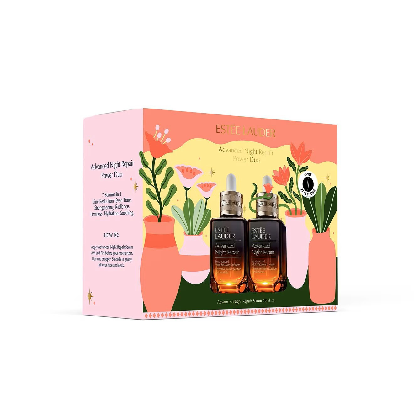 SEPHORA Advanced Night Repair Serum Duo is a luxurious skincare set designed to repair, hydrate, and rejuvenate your skin overnight. Featuring two bottles of the iconic Advanced Night Repair Serum, this duo helps reduce the appearance of fine lines, improves skin texture, and enhances radiance. Perfect for all skin types, it provides long-lasting hydration and restores a youthful, smooth complexion. Ideal for daily nighttime use to wake up with refreshed, revitalized, and glowing skin.