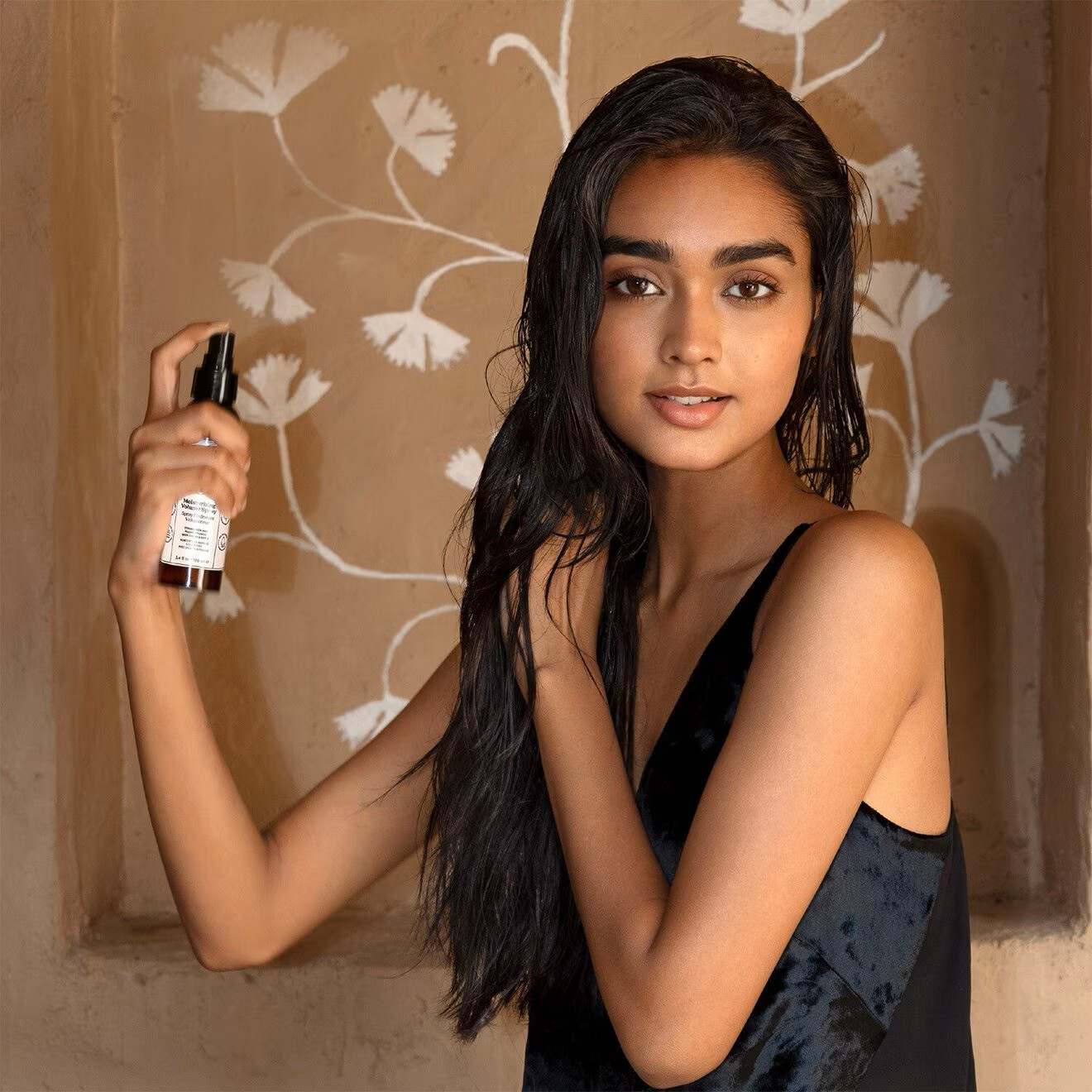• Step 2 – Spray at Roots: Hold 6–8 inches from hair and spray lightly