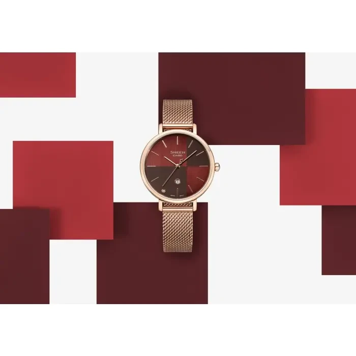 Pink gold ion plated case and mesh band