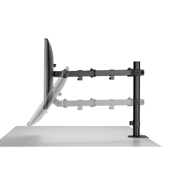 Built from heavy-duty materials, the SG-896MB provides outstanding stability and strength while supporting monitors from 17” to 27”. Its 360° rotation, tilt (+70° to -45°), and swivel (+90° to -90°) functions allow effortless positioning for the best viewing experience.