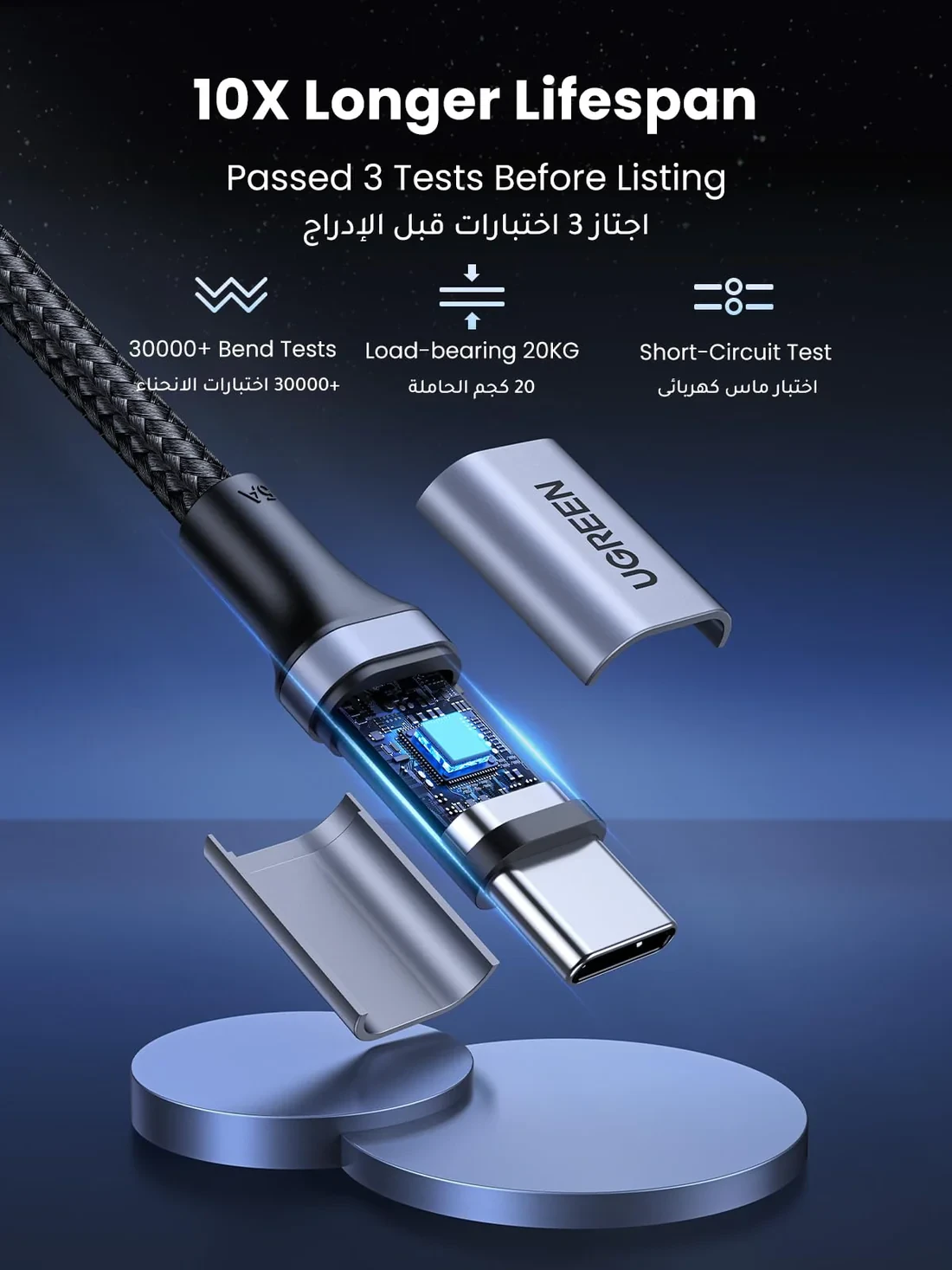 Reinforced aluminum alloy connectors and nylon braided cable ensure flexibility, longevity, and tangle-free use. Tested for 10,000+ bends for high durability.