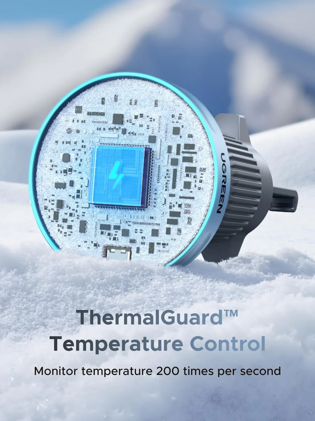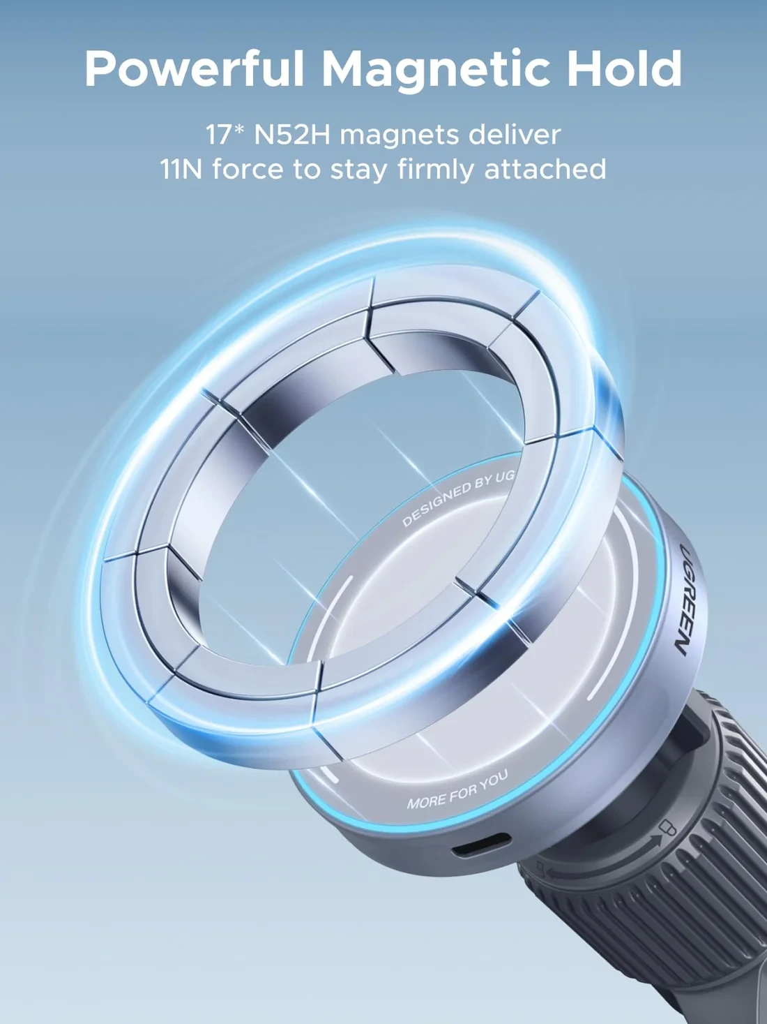 Equipped with an advanced magnetic power profile, the charger provides a powerful 1600g magnetic holding force. Your phone stays firmly attached to the mount even during sudden braking or bumpy road conditions.