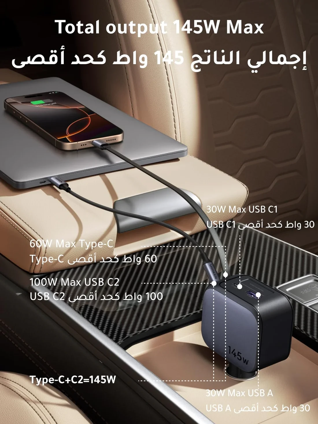 1 × UGREEN 145W Fast Car Charger