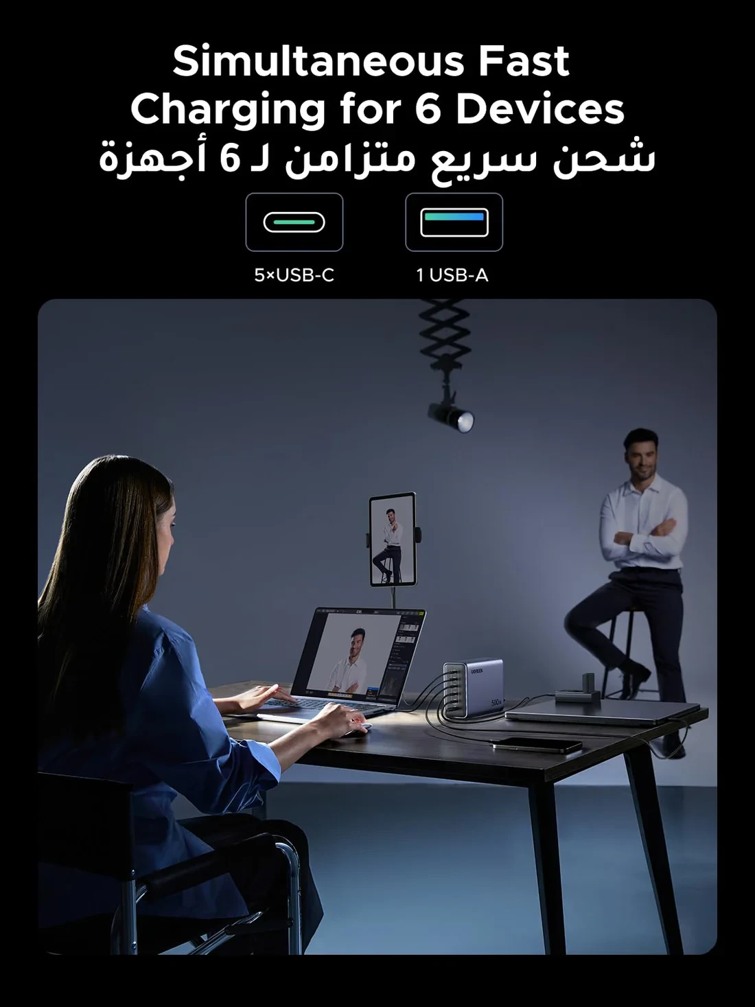 Built with advanced GaN (Gallium Nitride) technology, the charger offers faster charging, higher efficiency, and better heat management in a compact desktop design. It is the perfect solution for offices, workstations, and high-power professional setups.