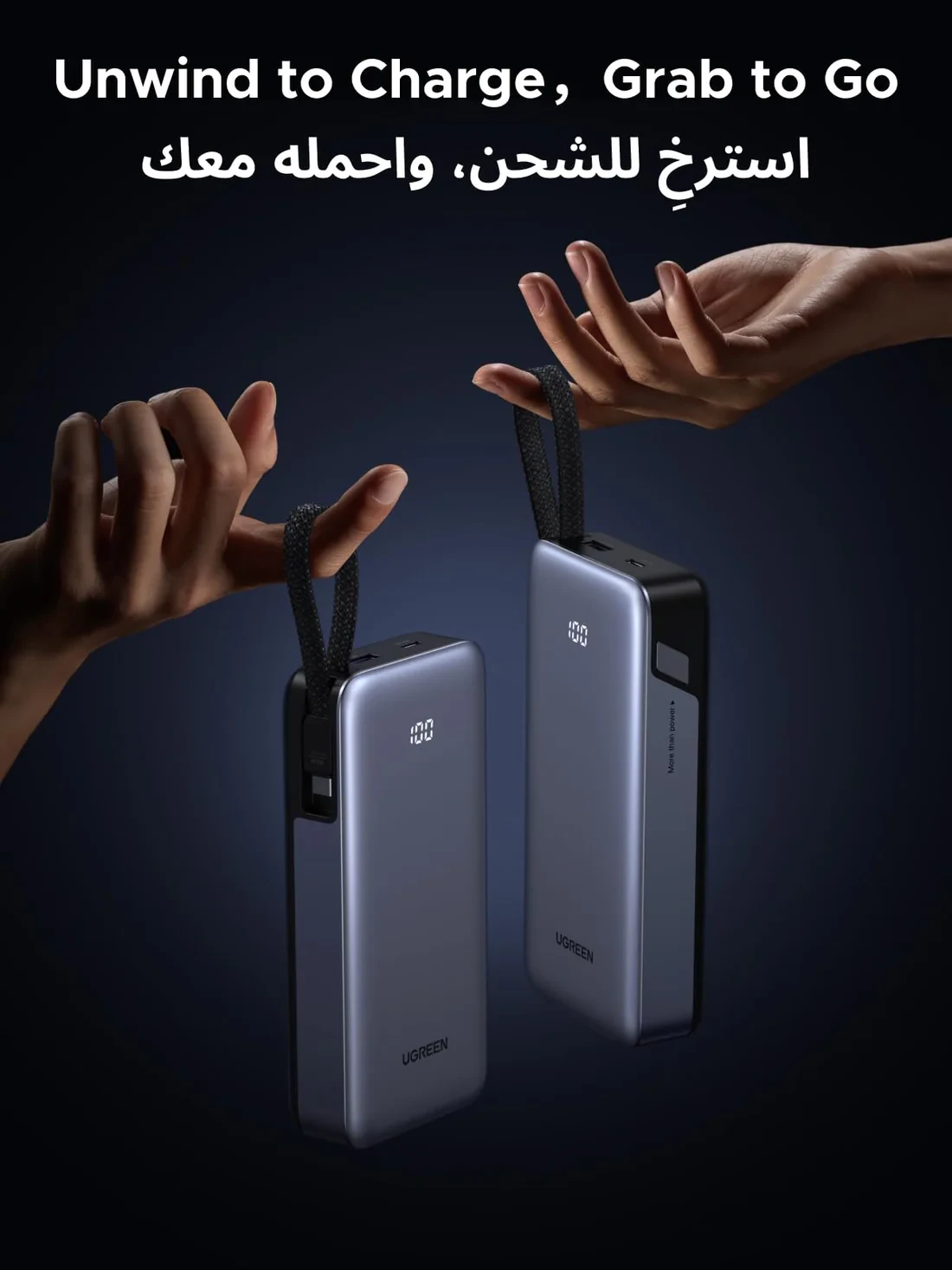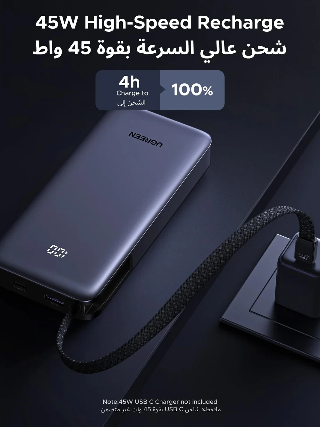 The UGREEN 20000mAh 45W Fast Charging Power Bank is a powerful and portable charging solution designed for smartphones, tablets, and laptops. With a built-in braided USB-C cable, this power bank eliminates the need to carry extra charging cables, keeping your bag organized during travel, work, or daily commuting.
