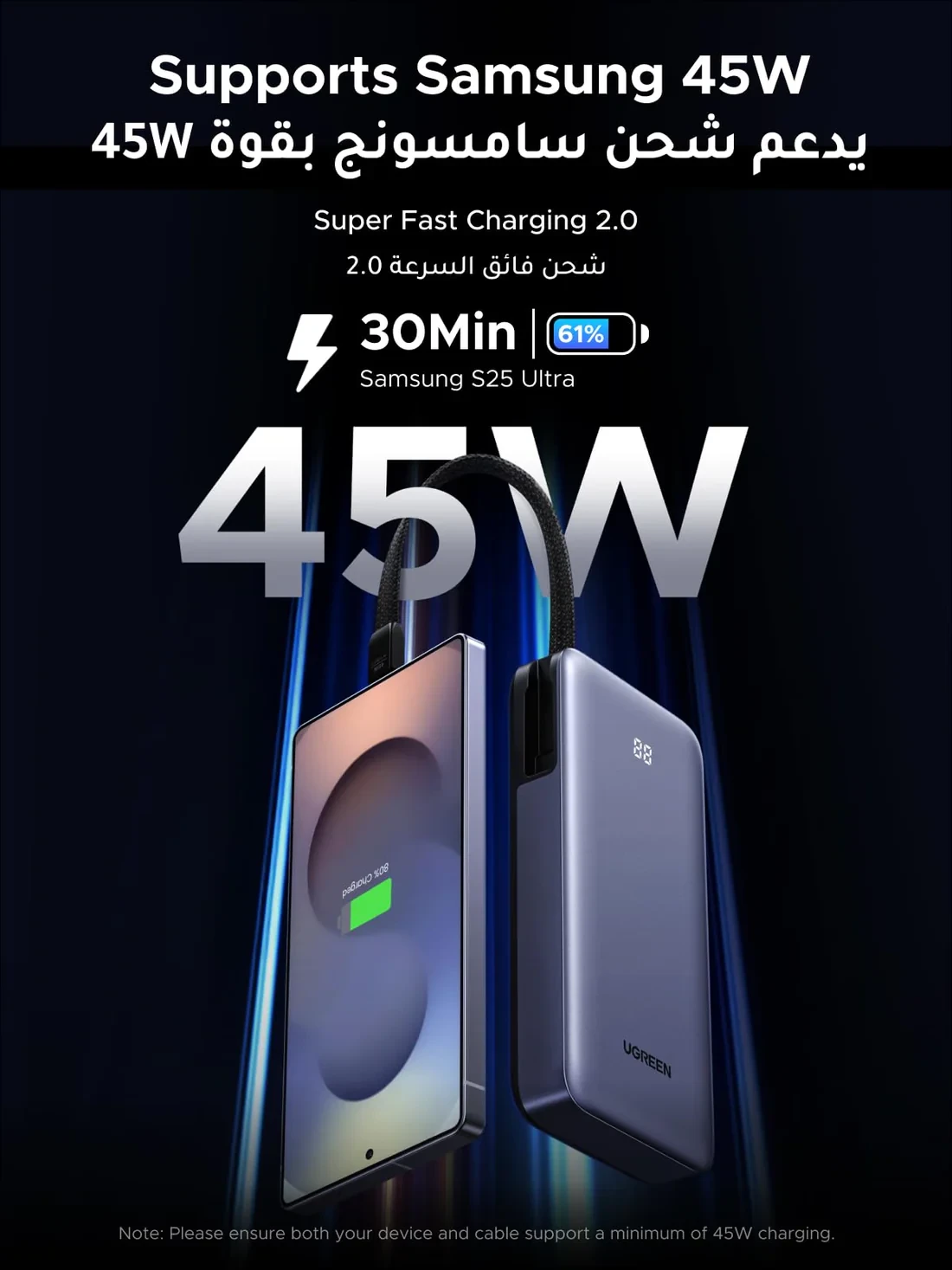 Equipped with 45W PPS and Power Delivery fast charging, the power bank delivers efficient power for a wide range of devices. It can rapidly charge smartphones and tablets while also providing reliable charging support for compatible laptops and USB-C devices.
