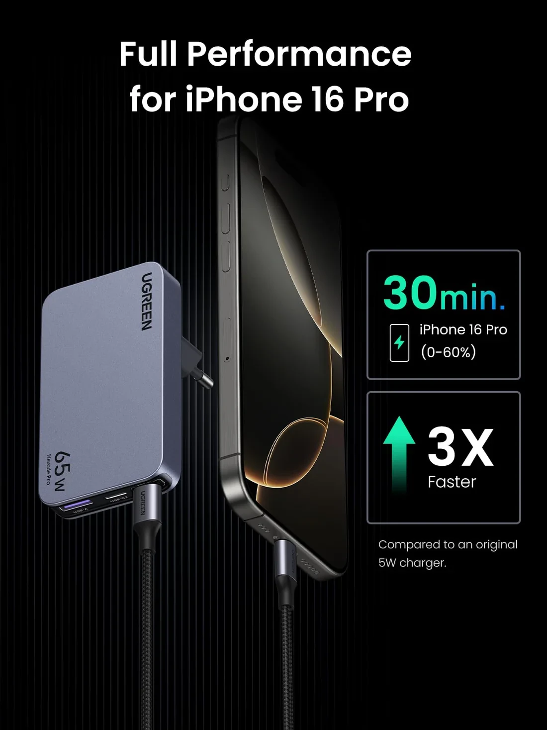 The UGREEN Nexode Pro 65W Travel Charger is the ultimate compact and safe solution for multi-device charging on the go.