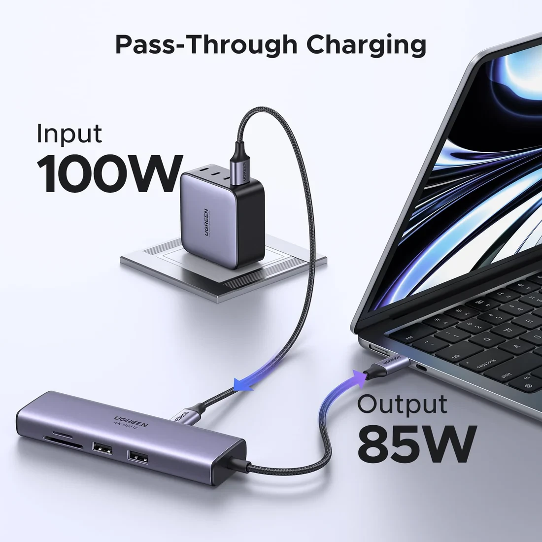 Keep your laptop fully powered while using the hub. The USB-C Power Delivery port supports up to 100W charging, ensuring reliable power for devices like MacBook Pro, MacBook Air, and other USB-C laptops.