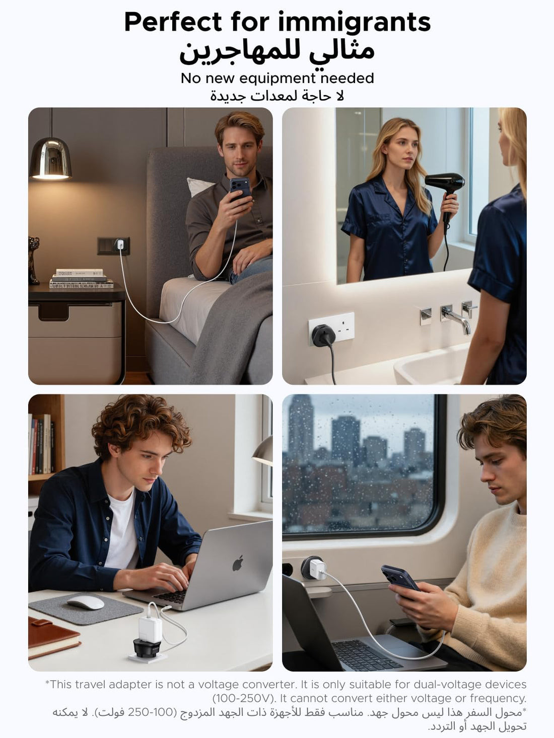 ⚠️ Note: This adapter does not convert voltage. Make sure your device supports the local voltage (usually 220–240V) or use a transformer if needed.