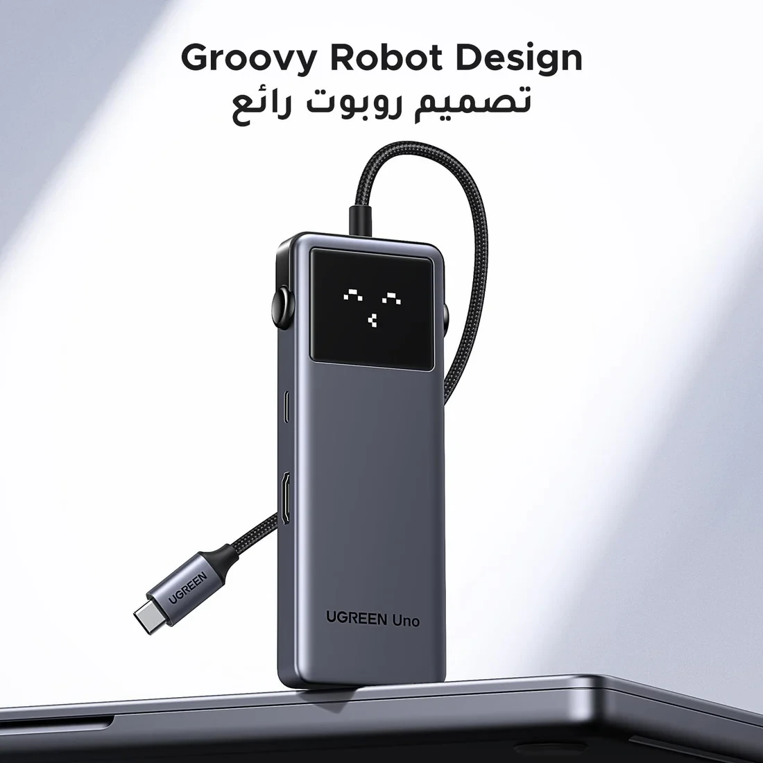 The UNO USB-C Hub features a unique robot-inspired design with four smart status emojis that display the device’s working state. It’s not just functional — it adds personality to your desk setup.