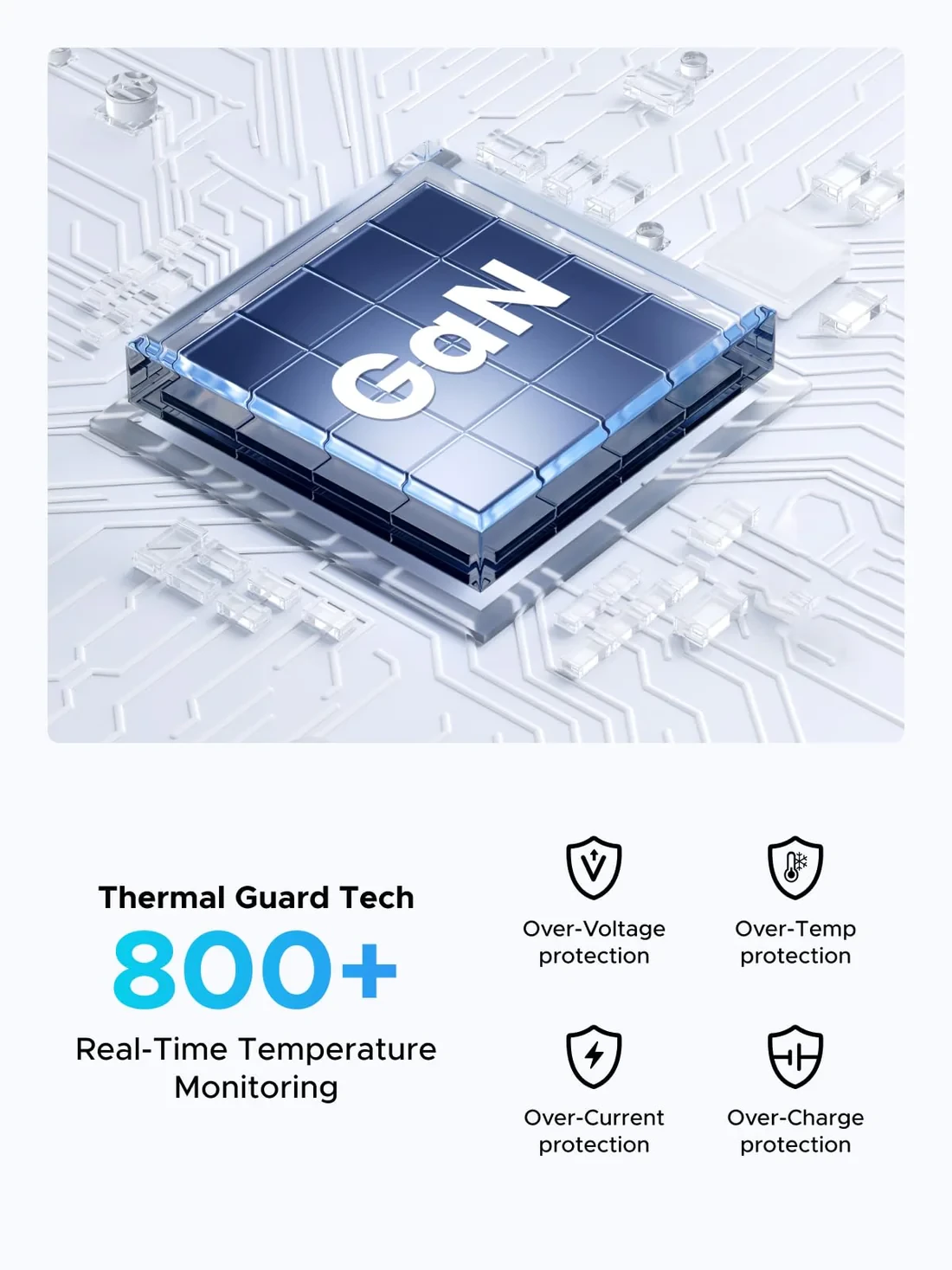 The built-in intelligent protection system safeguards your devices against overheating, overcharging, overvoltage, and short circuits, ensuring reliable and safe charging every time.