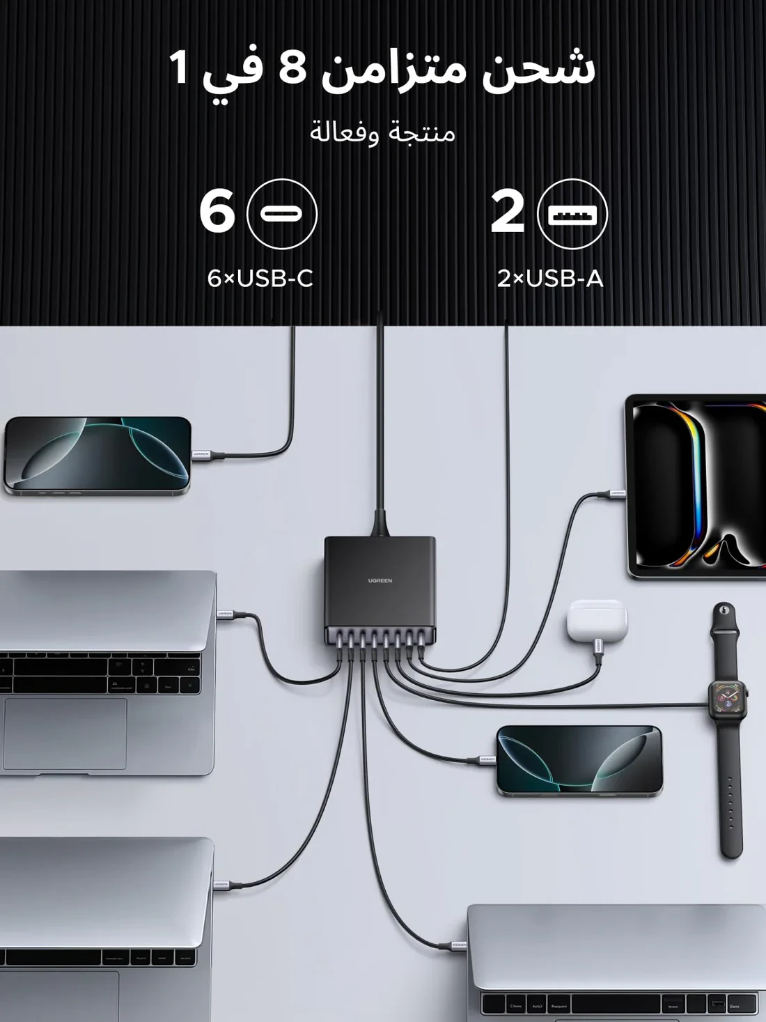 1 × UGREEN Nexode 200W 8-Port Desktop USB Charger