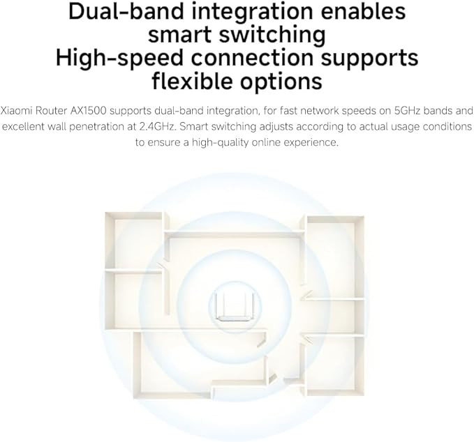 The Xiaomi Router AX1500 White offers fast WiFi 6 performance for a smooth and dependable internet experience with many devices connected. It has both 2.4GHz and 5GHz bands along with Gigabit Ethernet ports, making it great for low-latency activities like streaming, gaming, and browsing. Its white, stylish design matches well in any home or office, and it comes with advanced features such as OFDMA, MU-MIMO, and WPA3 security for better network performance and safety. Setting it up is easy with the Xiaomi Home app, making it a great option for families, remote work, and smart home setups.