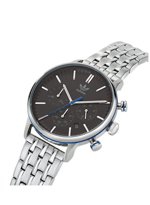 The Adidas Chrono watch model AOSY22018 is designed with a round stainless steel case and a matching stainless steel bracelet, offering a structured and durable build suitable for daily wear. It features a black analog dial protected by mineral glass, providing clear visibility for timekeeping and chronograph functions. The stationary stainless steel bezel and balanced dial layout support a clean and practical design.