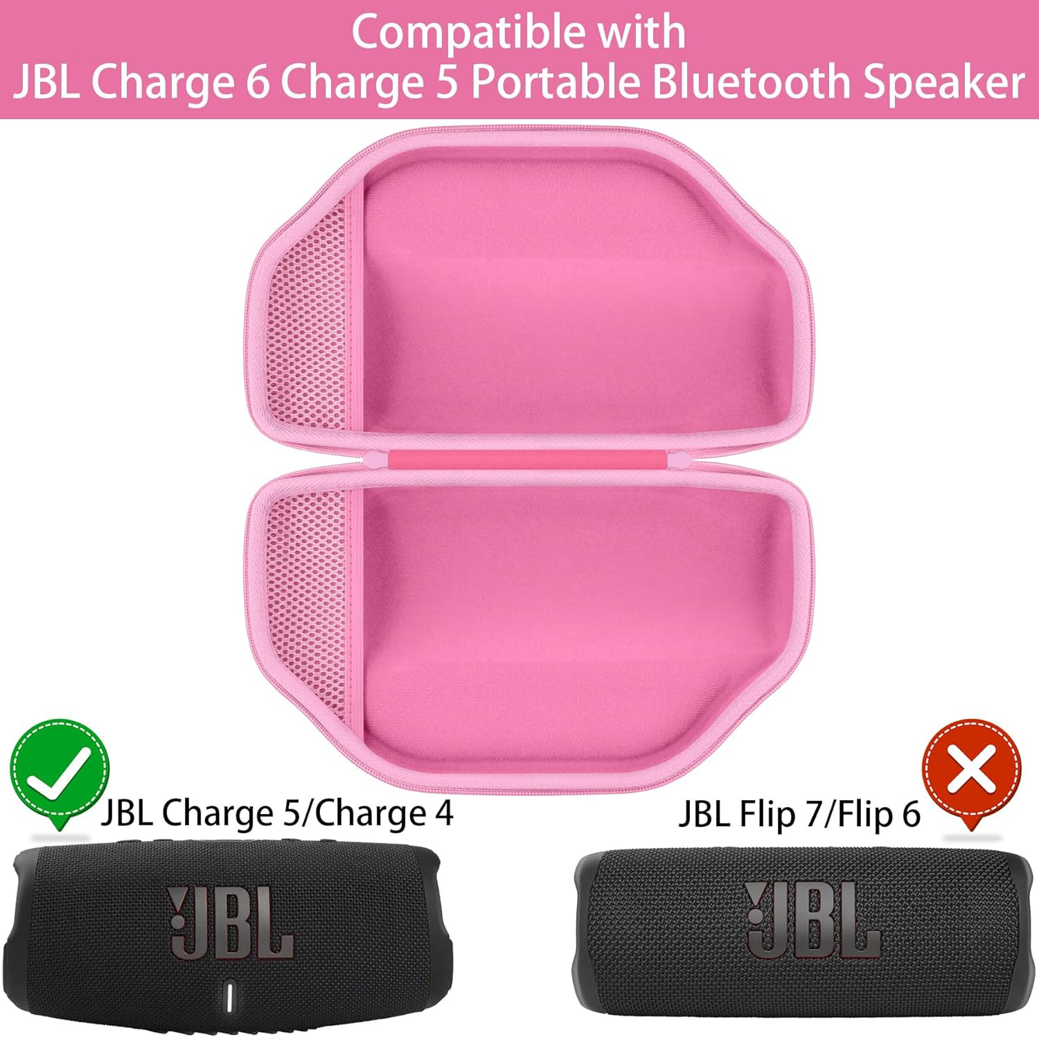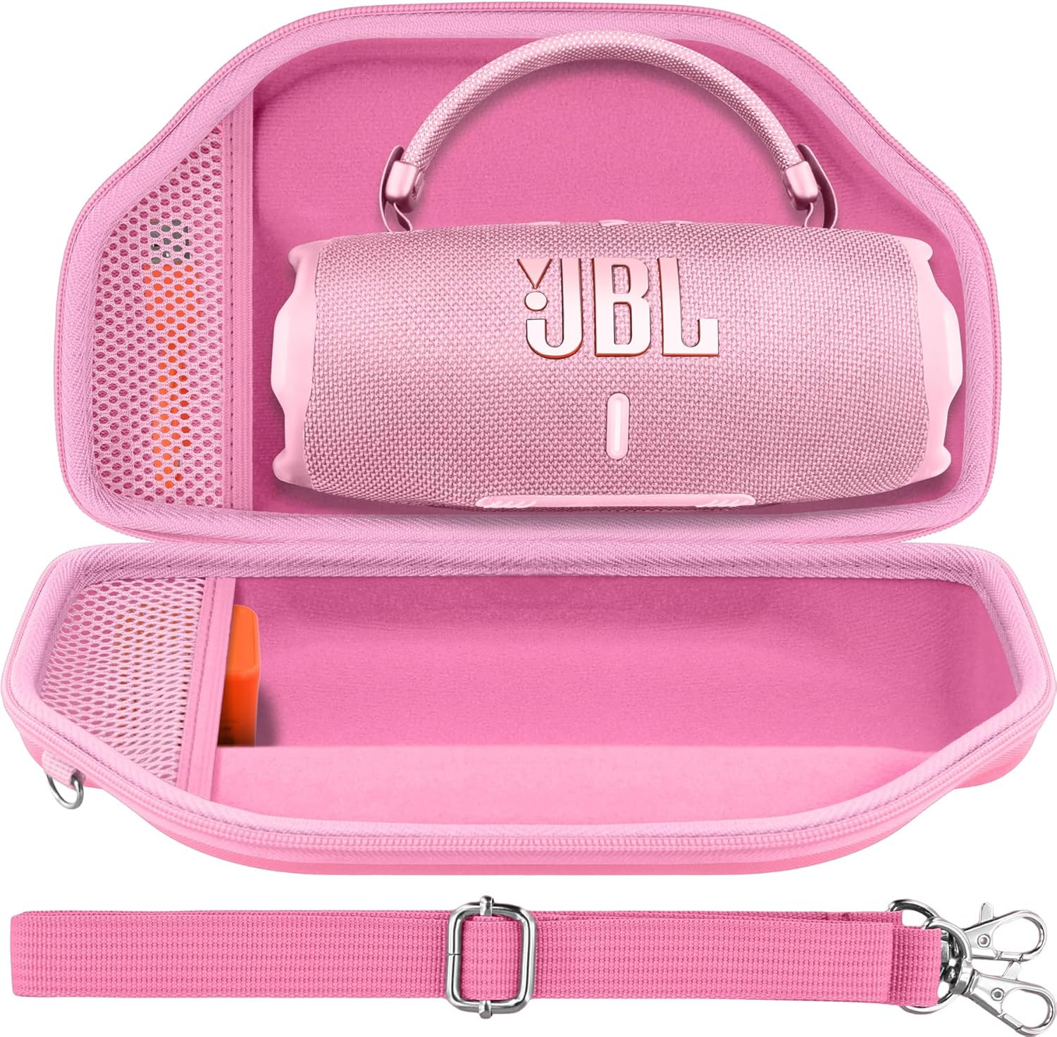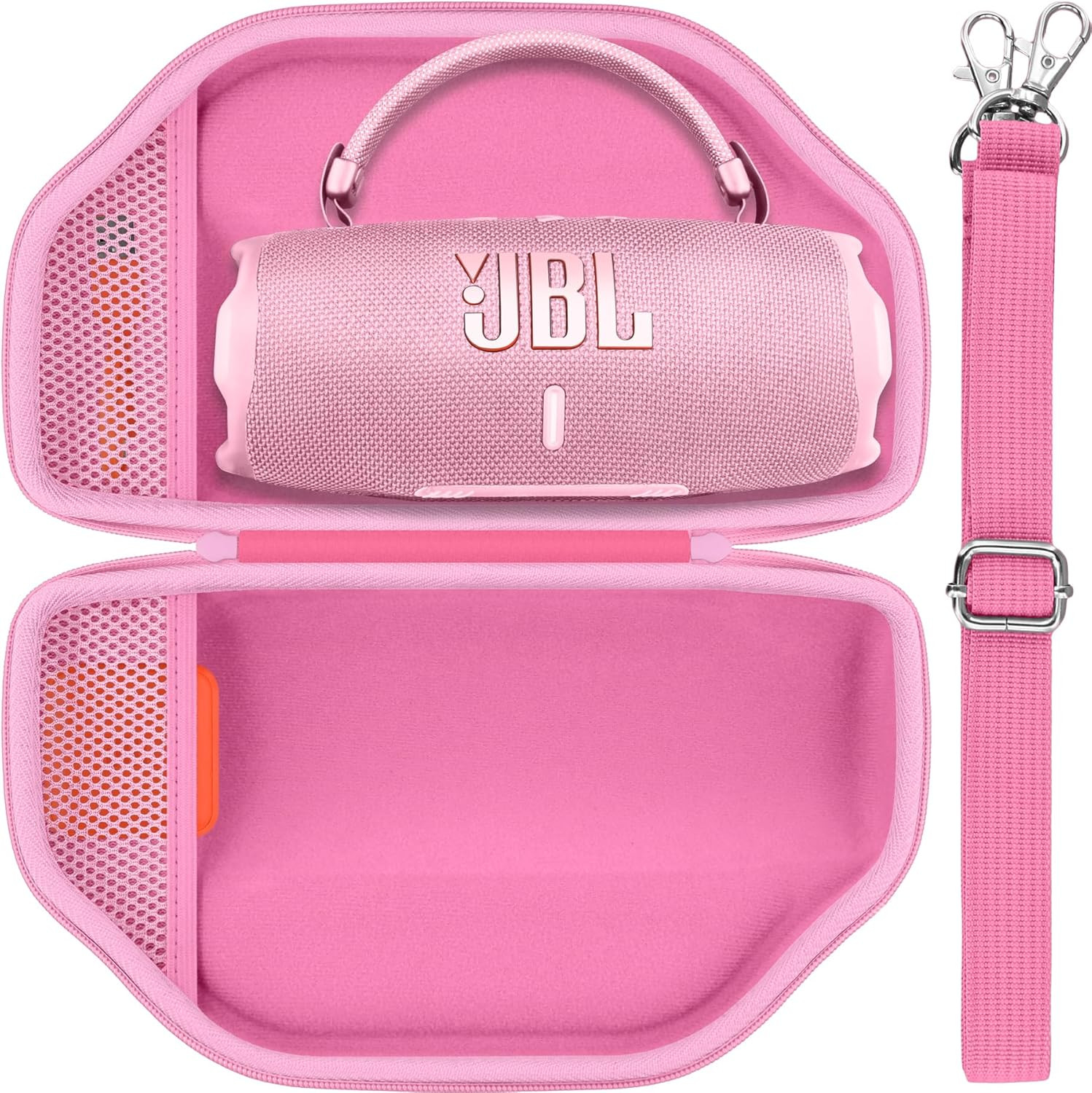 With a sleek pink finish, durable build, and compact design, this Baval Hard Case is the ideal travel companion for your JBL Charge 6 or Charge 5 speaker.