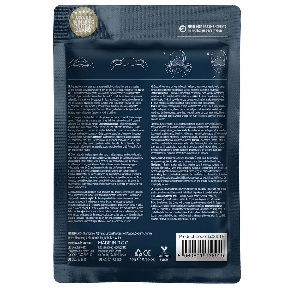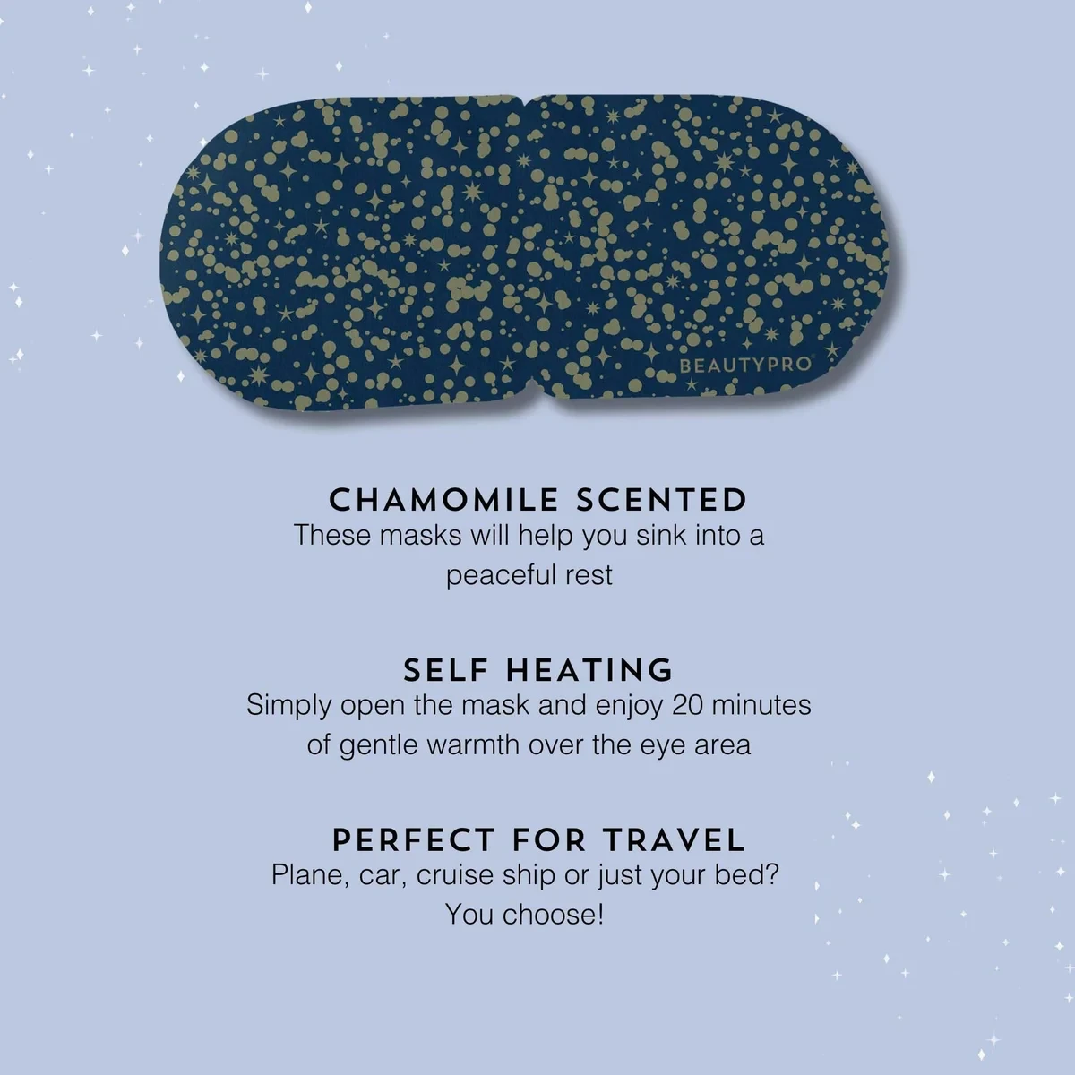 The BEAUTYPRO Warming Eye Mask is designed to provide a calming and comforting experience for tired eyes. Offering gentle warmth, the mask helps create a moment of relaxation while supporting a smooth and refreshed appearance around the delicate eye area.
