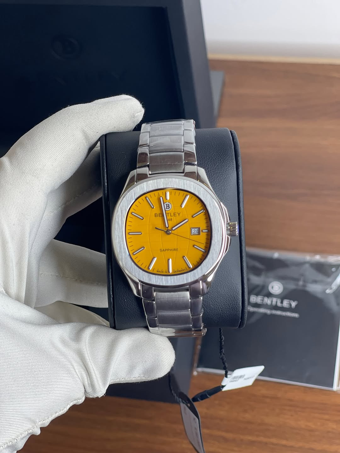 The Bentley Men’s Watch BL1869-10MWYI from the Industrial Ultimate collection is designed with a full stainless steel construction, offering a robust and structured appearance suitable for daily and professional wear. The case measures 40.0 mm by 44.5 mm, providing a balanced wrist presence, while the orange dial adds a distinctive visual contrast within a clean analog layout.