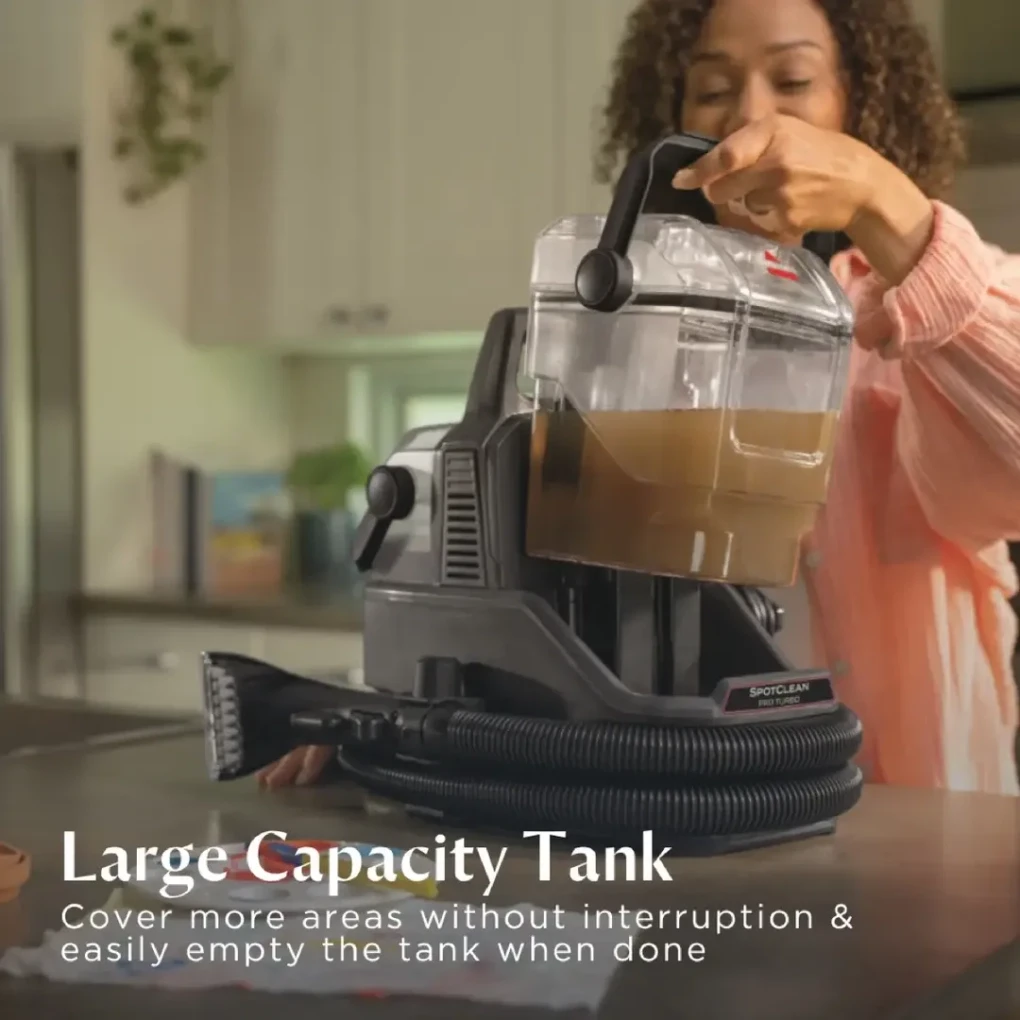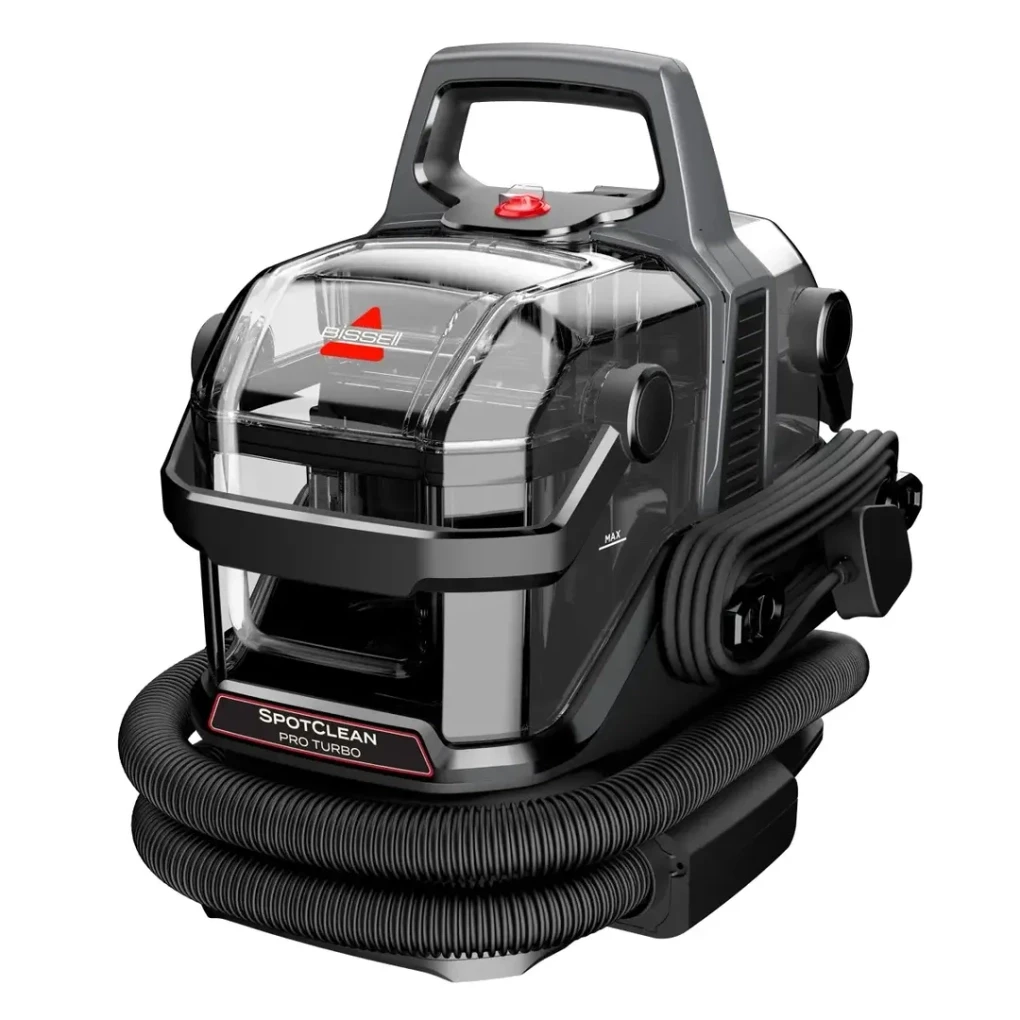 The Bissell Spot Clean Pro Turbo Corded Portable Cleaner, 3911K (400 W) is engineered to tackle stubborn stains and spots with superior suction, efficient brushing, and precise solution delivery. Perfect for carpets, upholstery, stairs, and cars, this portable cleaner provides a professional-grade clean at home with minimal effort.