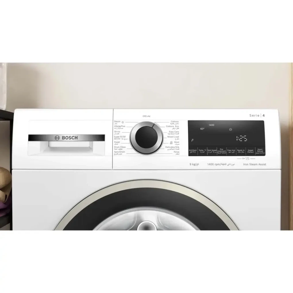 The Bosch Serie 4 Freestanding 9Kg Front Load Washing Machine combines high-capacity washing with advanced technology to deliver excellent cleaning results while protecting fabrics. Designed for modern households, it offers energy efficiency, quiet operation, and specialized programs to meet all your laundry needs.