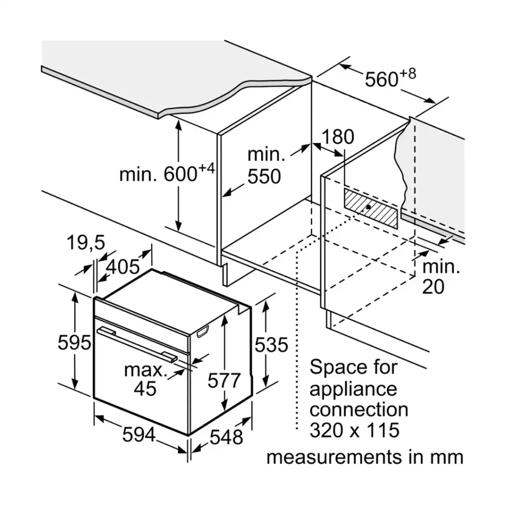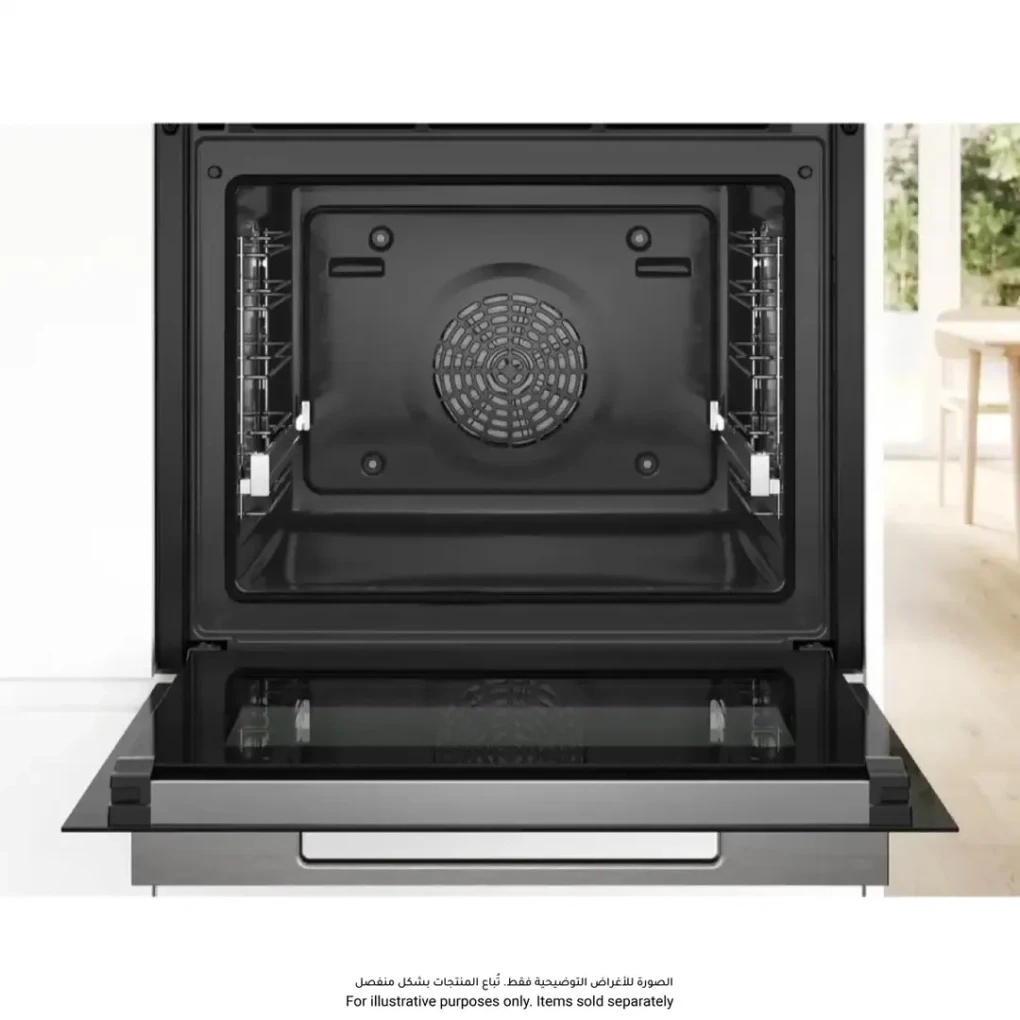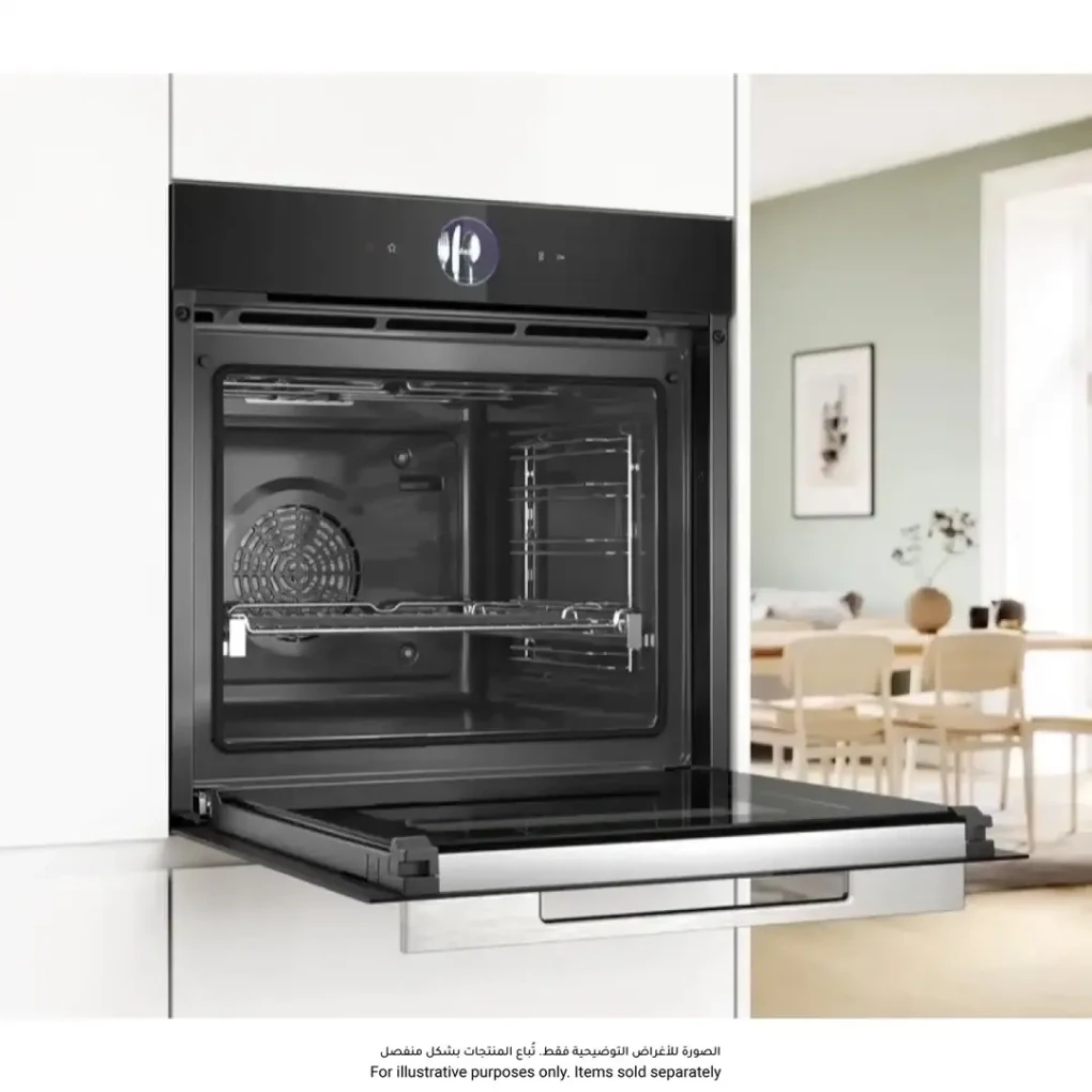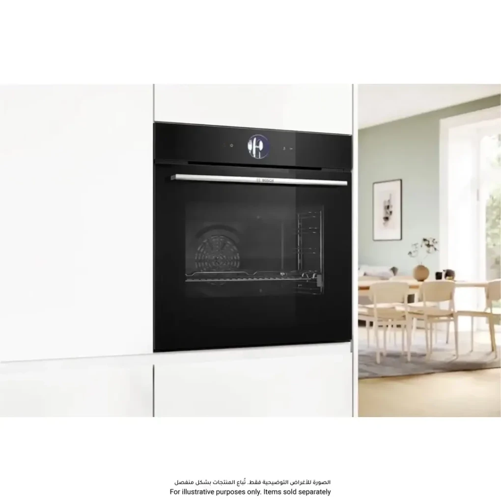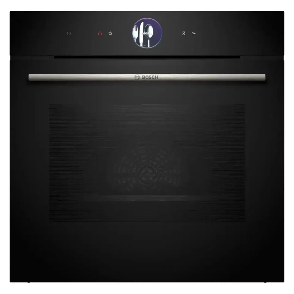 The Bosch Series 8 Built-In Compact Oven (HBG776NB1M) offers precise, intuitive cooking with a generous 71 L capacity. Its Digital Control Ring and TFT touchscreen provide effortless navigation and exact adjustments for perfect results. Enjoy intelligent baking and roasting with PerfectBake Plus, PerfectRoast Plus, and Meat Probe Assistant. Smart connectivity through Home Connect allows remote operation, recipe transfer, and voice control for added convenience. Pyrolytic and Hydrolytic cleaning make maintenance simple, keeping your oven hygienic and ready for every culinary task.