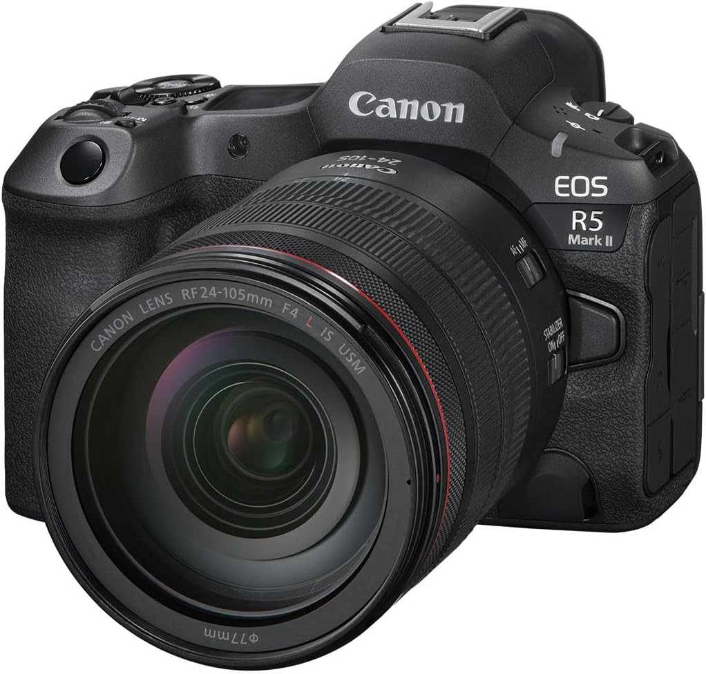 Combined with the versatile RF 24-105mm zoom lens, the EOS R5 Mark II provides a flexible focal range ideal for portraits, landscapes, travel photography, and professional video production.