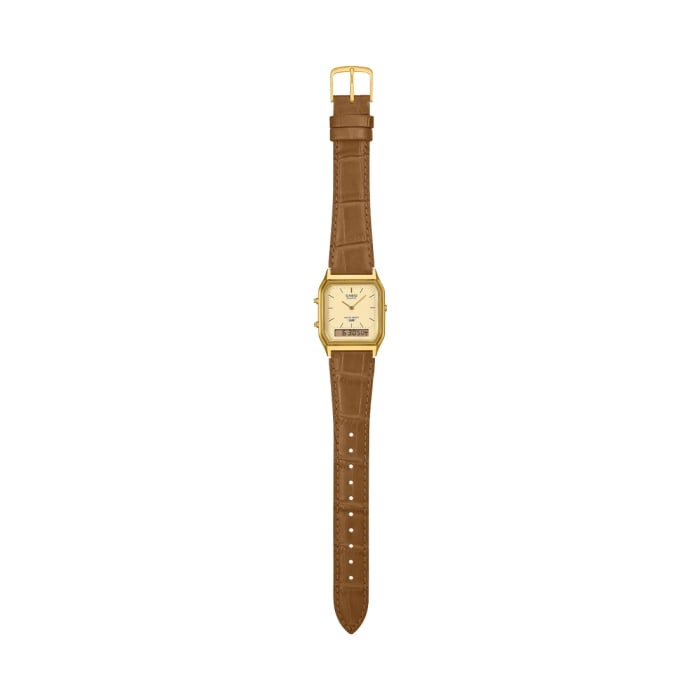 Upgrade your everyday style with this elegant and multifunctional gold tone analog-digital watch. Designed with a durable resin case in gold tone finish and paired with a premium leather band, this timepiece blends classic sophistication with modern functionality.