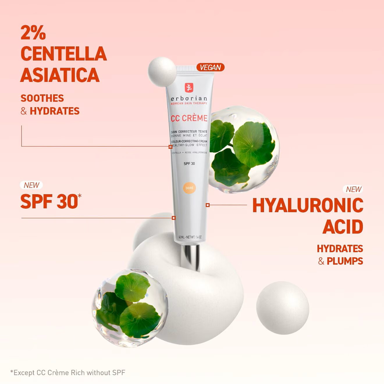 CC Crème SPF30 with Hyaluronic Acid ek multitasking complexion perfector hai jo skincare aur makeup dono ka kaam karta hai. Yeh lightweight crème skin tone ko even karta hai, redness aur dullness ko visibly reduce karta hai, aur natural, healthy-looking finish deta hai. Hyaluronic Acid ki wajah se skin hydrated, smooth aur fresh mehsoos hoti hai, jabke SPF30 daily sun exposure se protection deta hai. Daily use ke liye ideal, yeh CC crème skin ko breathable coverage ke sath naturally flawless banata hai.