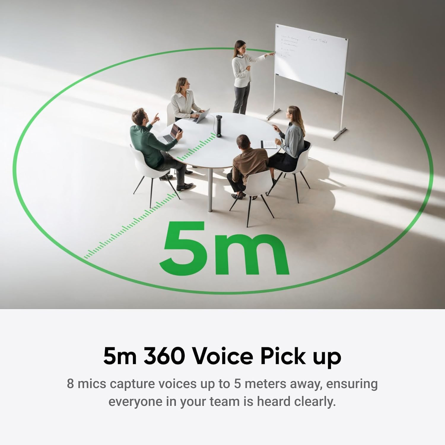 Equipped with 8 high-precision microphones, the device captures voices clearly while reducing background noise, ensuring accurate recordings even in busy environments.