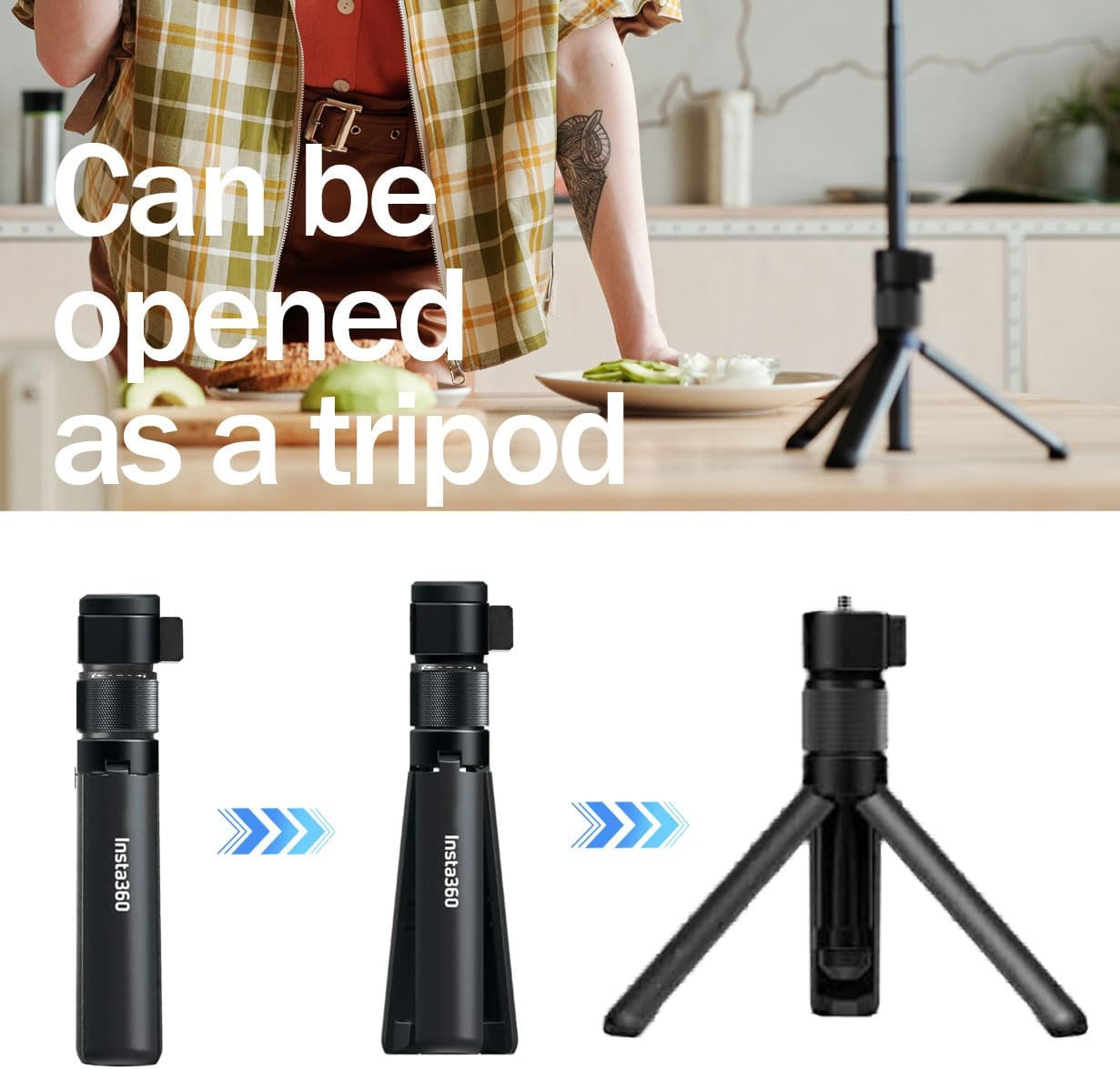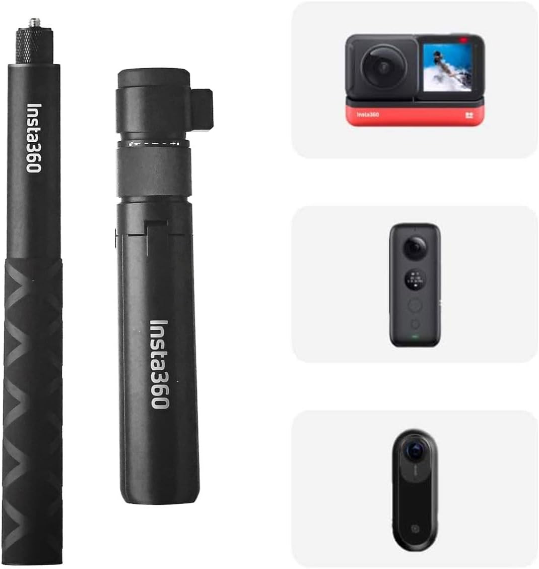 Made from durable aluminum, the lightweight yet sturdy design makes it perfect for travel, vlogging, panoramic photography, and bullet-time shots. The foldable tripod design also allows easy storage and portability, making it a practical all-in-one accessory for any Insta360 user.