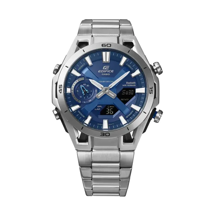 This Casio Edifice model is perfect for business professionals and sports enthusiasts who want the strength of stainless steel, the innovation of Bluetooth auto time adjustment, and the convenience of solar power — all in one sophisticated design.