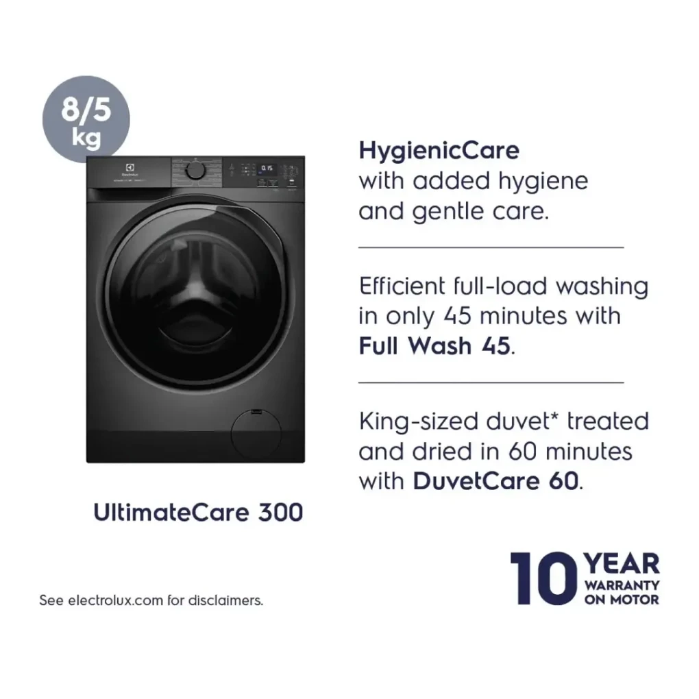1 × Electrolux UltimateCare 300 Washer Dryer, EWW8024P3SC (8 Kg Wash / 5 Kg Dry, 1200 rpm)