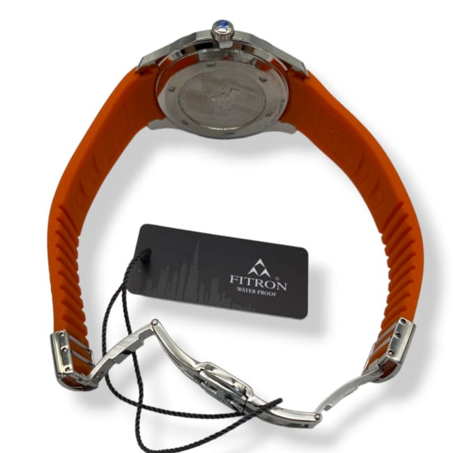 The Fitron Men’s Quartz Watch with an Orange Rubber Strap combines dégagé design with precise chronometer. Featuring a durable pristine sword case, bold orange rubber band, and accurate quartz movement, this watch is perfect for men who prefer a ultramodern, active life with a touch of vibrant style.