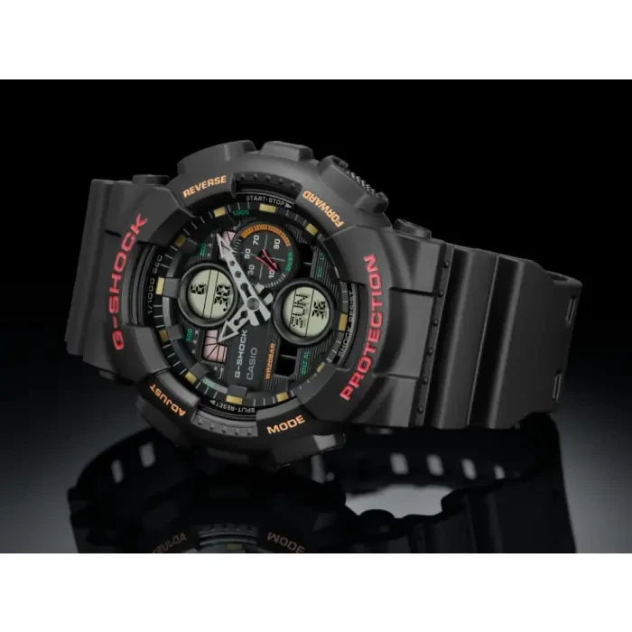 Additional features include a countdown timer with auto-repeat, five daily alarms with snooze, hourly time signal, and full auto-calendar up to the year 2099. Combining bold design with powerful functionality, this watch delivers reliable performance and sporty style for active lifestyles.