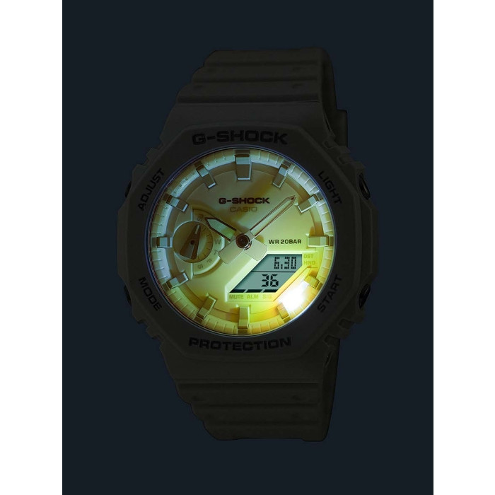 Designed for functionality, the watch features world time across 31 time zones, a precise 1/100-second stopwatch, a 24-hour countdown timer, and five daily alarms to keep you organized throughout the day. The double Super Illuminator LED lights ensure excellent visibility for both analog and digital displays, while the hand shift feature provides a clear view of digital information when needed. With a full auto-calendar up to 2099, selectable 12/24-hour format, and accurate timekeeping, this G-Shock delivers advanced features in a rugged and eco-conscious design.